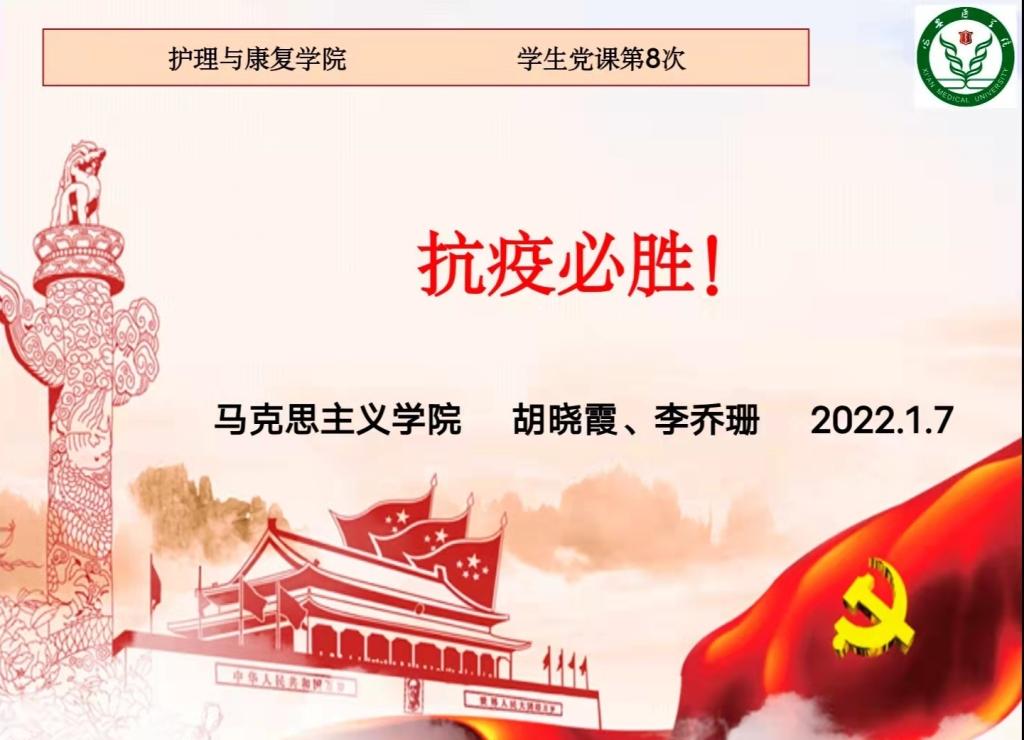 突如其来的疫情席卷西安,为帮助同学们根植“抗疫必胜”的信念,2022年1月7日,bat365在线中国官网登录入口学生党支部于腾讯会议线上开展“抗疫必胜”专题讲座。学校党史学习教育宣讲团成员、马克思主义中国化教研室主任胡晓霞担任主讲,马克思主义学院学院教师李乔珊老师进行补充,bat365在线中国官网登录入口学生党支部积极分子、在校党员及团员青年参与倾听本次讲座。
