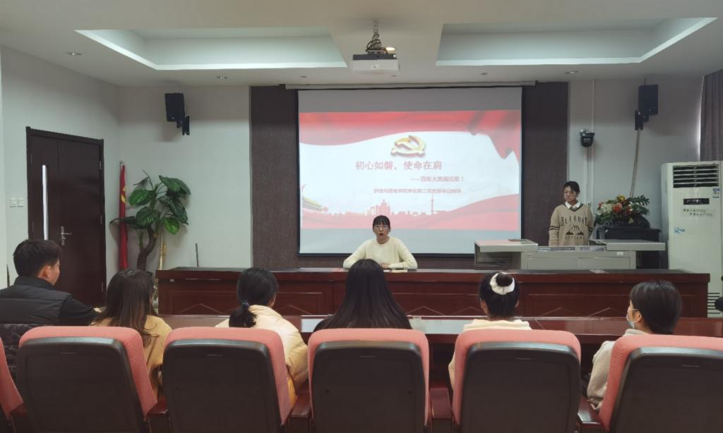 在“不忘初心,牢记使命”主题教育总结大会上,习近平总书记着眼推进党的建设新的伟大工程,突出强调要以这次主题教育为新的起点,不断深化党的自我革命,明确提出了持续推动全党“不忘初心、牢记使命”的六个方面要求,对于促进全党同志自觉砥砺初心与使命,汇聚起新长征路上重整行装再出发的磅礴力量,具有重大意义。为积极响应习近平总书记的号召并使bat365在校学生党员、预备党员深入党史,践行使命,bat365在线中国官网登录入口学生第二党支部于2021年11月26日在bat365在线中国官网登录入口报告厅开展以“初心如磐,使命在肩——百年大党再出发”为主题的党课。