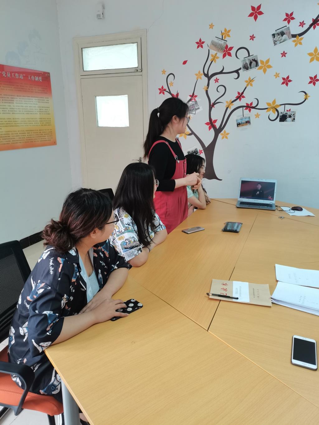 赵朝峰、卢勇、何畏围绕“马克思主义与中国共产党的百年辉煌”、“中国共产党与中华民族的伟大复兴”、“中国共产党革命精神形成与传承的百年历程”三个题目开展讲述,引导学生领略党的百年芳华,勉励新时代青年人要担复兴重任、做时代新人。观看结束后,党员、预备党员共同讨论了视频刚开始的问题:“在你眼里中国是什么样的?”预备党员党张婷说:“我的国家是一个拥有五千年文化的大国,我们生于斯长于斯,它能做到“一方有难,八方支援”,它能把维护人民群众的利益作为最高的价值标准。我们正在见证我们国家慢慢地变得繁荣富强,见证着我们的党带领着人民在实现中华民族伟大复兴的道路中愈行愈远。”关于学习党史的意义,预备党员何培认为:“学习党史让我们看到老一辈革命党人的无私奉献,感受到一切都是来之不易的。同时也可以更好地传承红色基因、吸取经验教训。”