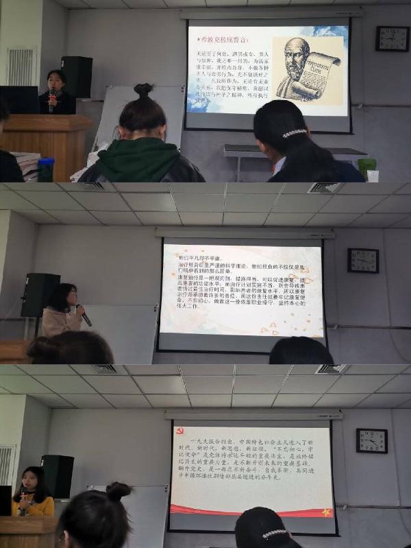 为了进一步贯彻落实“不忘初心,牢记使命”主题教育,使学生党员和积极分子更好的理解“初心”和“使命”,2019年11月7日,护理学院学生第二党支部在陕西省康复医院开展了以“‘不忘初心,牢记使命’,康复接力我先行”为主题的演讲比赛。陕西省康复医院康复科学研究所的张洁、田亚峰、贾煜珺三位老师和侯雪、潘茜、赵蜜文三名学生党员担任评委,共有13名积极分子报名参加。