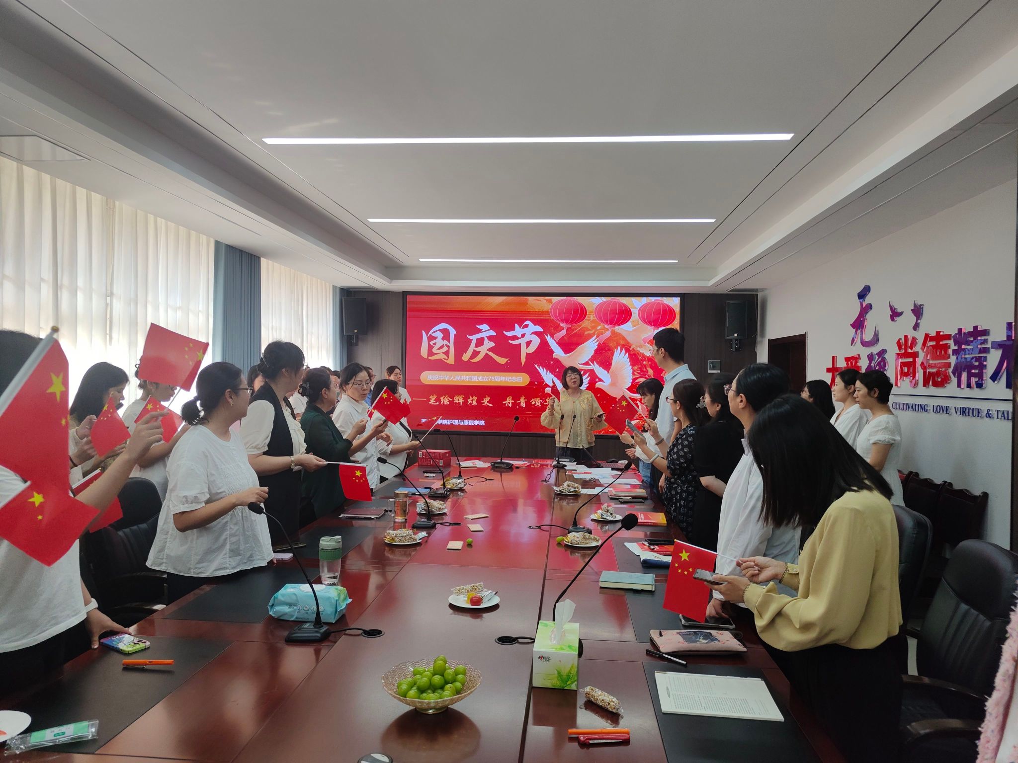 笔墨生香,书写精彩,心中有国,笔下有爱,护理康复学院的教师们用优美的文字、真挚的语言、悠扬的歌声表达对党、对国家、对教育、对人民的热爱之情,让我们共同庆祝新中国75周年华诞,愿以吾辈之力量,捍卫盛世之中华!(bat365在线中国官网登录入口文/图南逸平)