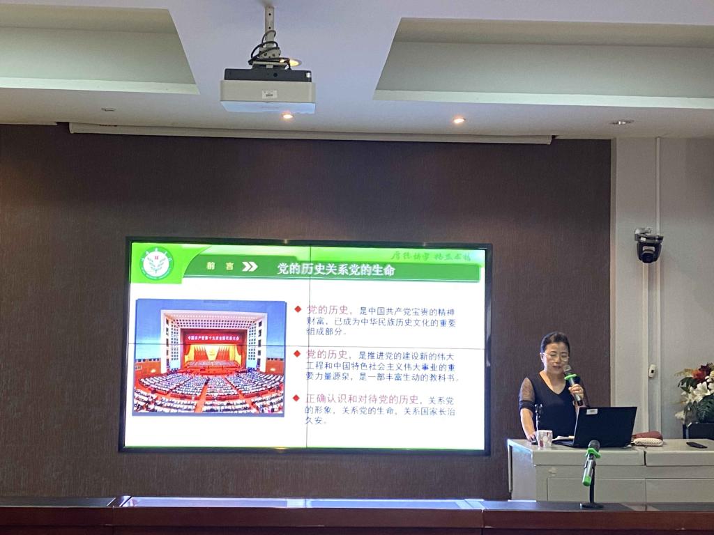 6月25日下午,bat365在线中国官网登录入口党总支在报告厅举办《中国共产党的光辉历程与宝贵经验》主题党课。党课由bat365在线中国官网登录入口党总支副书记、院长张永爱主讲,全体教工党员及部分学生代表参加了会议,会议由bat365在线中国官网登录入口党总支副书记刘庆主持。