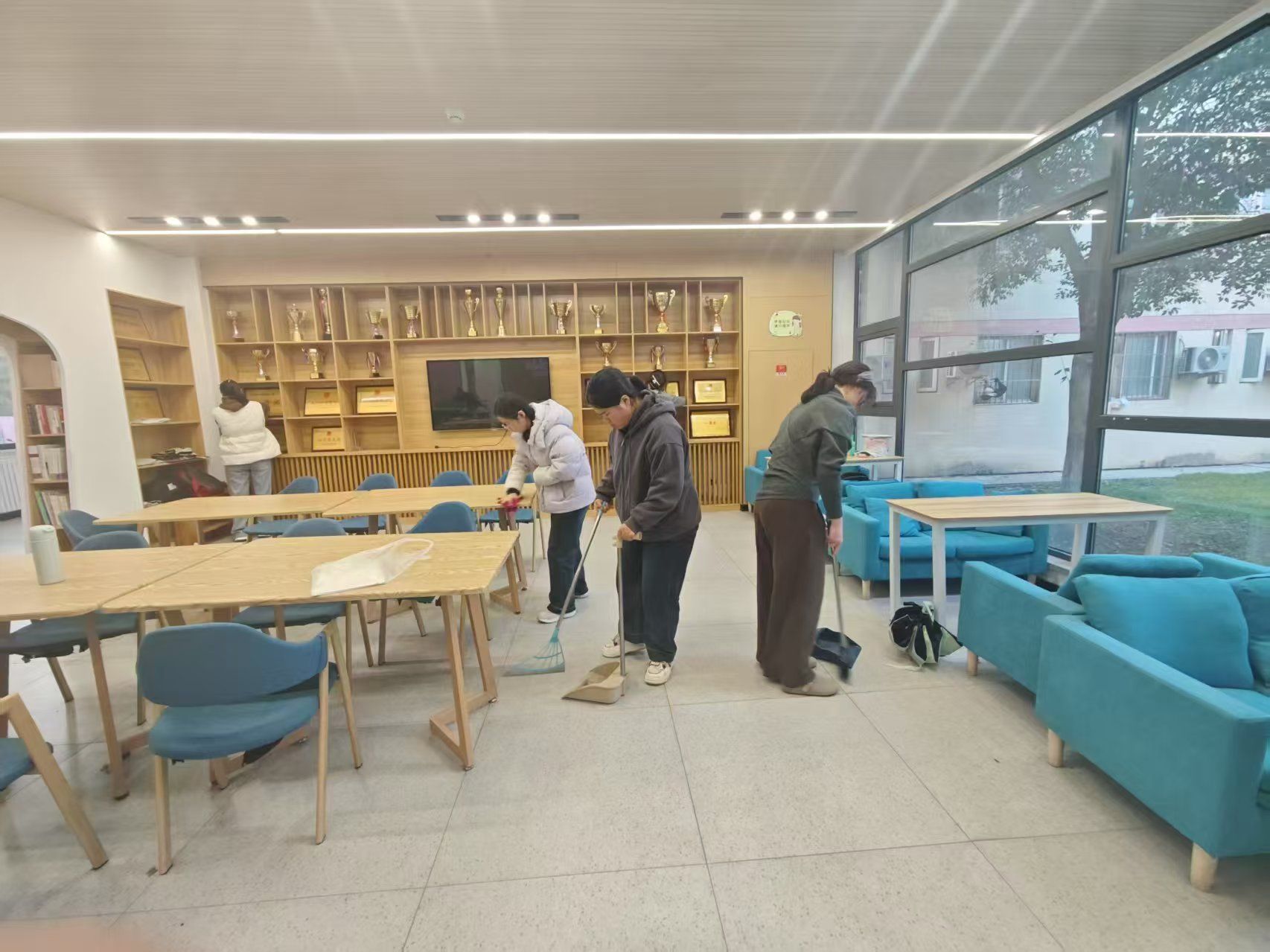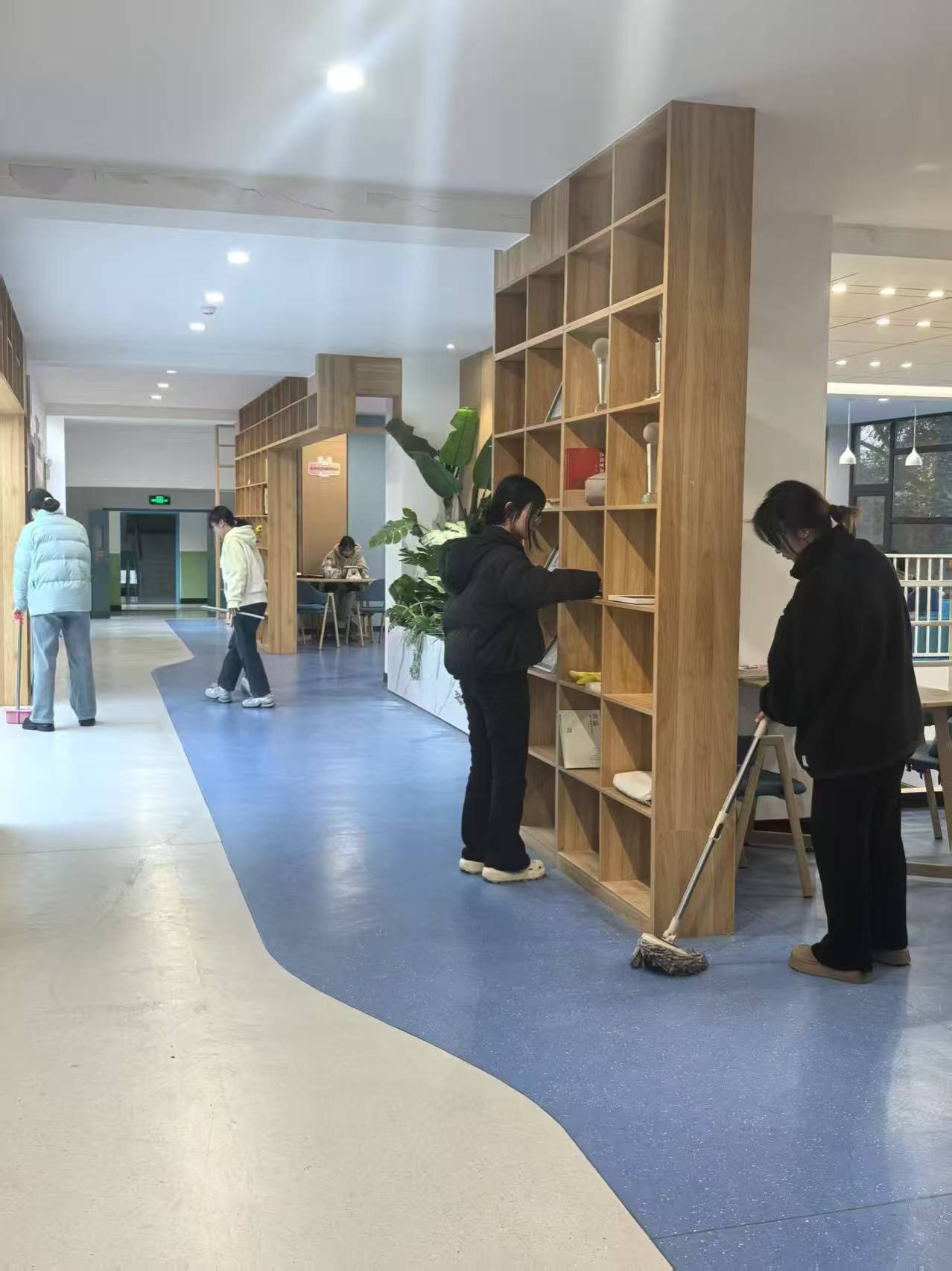 同学们手持扫帚、拖把、垃圾袋等工具将5号公寓一二楼公共自习室进行了全面清理。原本略显杂乱的自习室变得干净整洁、焕然一新。看着自己的劳动成果,每个人的脸上都洋溢着自豪的笑容。这次活动,不仅仅是一次简单的体力劳动,更是一次雷锋精神的深刻洗礼。