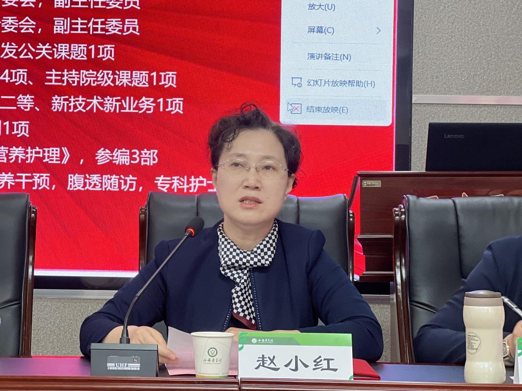陕西省人民医院总护士长、bat365在线中国官网登录入口特聘教学督导组组长赵小红教授代表全体委员发言,她谈到,感谢bat365在线中国官网登录入口的信任,教学督导使命光荣、责任重大,在今后的工作中将积极履行工作职责,将督导工作规范化、常态化,对教学过程中存在的问题予以针对性解决,以督促教,以督指导,全面提升学院的教育工作质量。