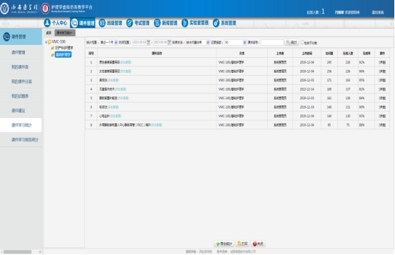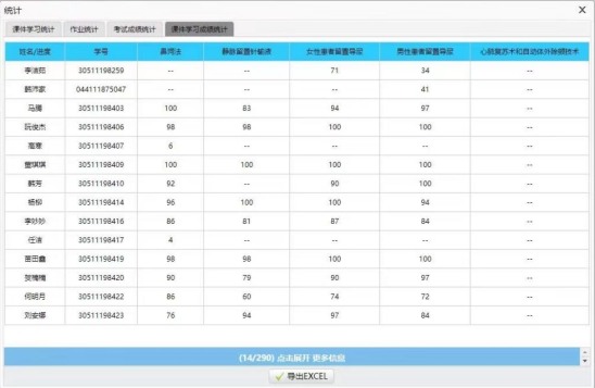 该平台主要包含两部分学习:临床思维训练是按照老师实验教学计划与内容设计病案进行临床推理,再利用临床护理思维软件设置实训任务,学生通过案例及临床情境按照护理程序的步骤分阶段培训,主要培养学生对课程、知识点的融合,以临床思维及推理能力为主要培养目标。二是利用虚拟仿真平台单项操作技能实验项目要求学生按时完成课前、课后的虚拟仿真知识点及操作流程的学习,并通过自测获取进入实景实验室的资格。学生在线通过虚拟仿真系统进行护理学操作技能训练,实训课程的完成不再受限于时间及空间,随时可依靠虚拟仿真医疗器械、材料进行训练。该软件的学习不仅强化学生对专科疾病知识点的预习复习,熟练操作流程;也提高了模型技能训练的效果;还有利于教师通过软件后台成绩差异对学生个性化指导。