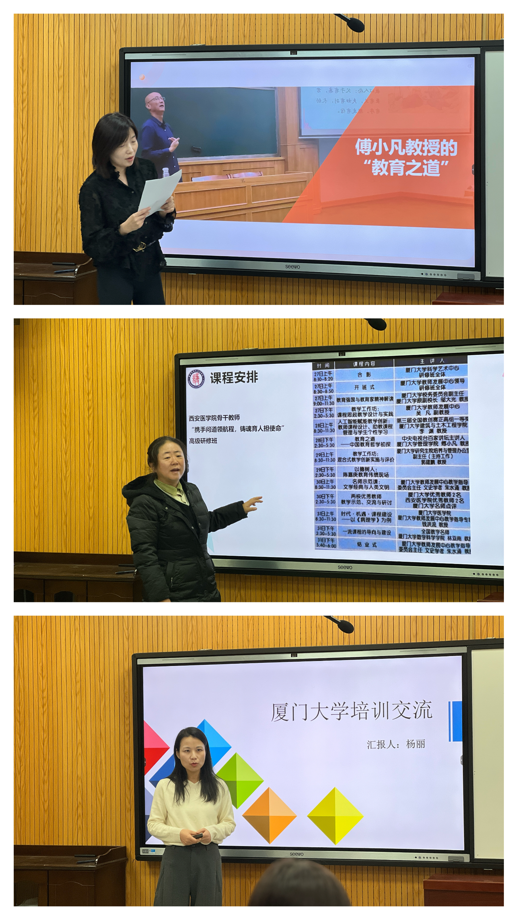 王立芹老师对“课程思政的教学设计”进行了深入分享,她结合自己在厦门大学的学习经历和教学实践,详细讲解了如何在专业课程中巧妙融入思政元素,实现知识传授与价值引领的有机结合。李菲老师以“强化教育理念,推动教育模式创新与应用”为主题,分享了她在厦门大学的学习心得。她认为,教育理念是教育的灵魂,强化教育理念是提升教学质量的关键,同时,她还展望了教育理念的未来发展趋势,鼓励大家积极拥抱变革,勇于尝试新的教学方法。杨丽老师围绕“课程思政与教学模式创新”的主题,强调了课程思政在高等教育中的重要性,并详细介绍了厦门大学的相关经验和做法。分享会结束后,与会教师们进行了热烈的讨论和交流。大家纷纷表示,通过此次分享会,不仅开阔了视野,还学到了许多先进的教学理念和方法。