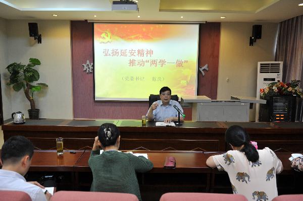 范兵书记分别从什么是延安精神、如何弘扬延安精神、全面从严治党、“两学一做”如何“做”及今后工作目标与要求等五个方面作了讲解。在分析了延安精神产生的 背景和丰富内涵后,他指出,作为延安的儿女我们更要发扬延安精神、自觉从延安精神中汲取力量,把人民群众的需要做为我们党奋斗的目标。