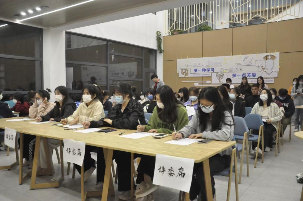 10月25日晚7点团总支学生分会在五号公寓楼一楼大厅举办了“学习党的二十大,强国复兴有我”主题演讲比赛初赛。