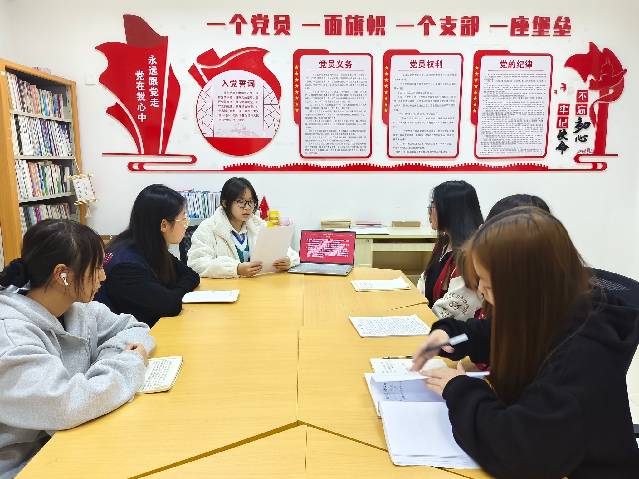 团总支副书记韩萌领学两会精神