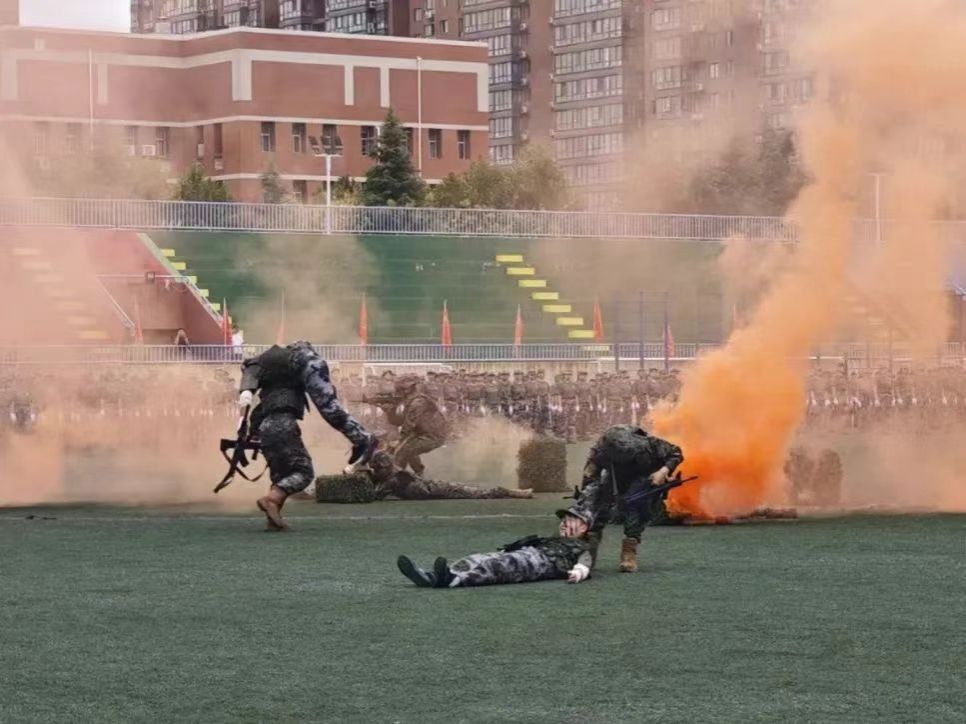 bat365新生以凌厉的匕首操,伴随着一声声铿锵有力的口号,迸发出昂扬向上的精神。体能与意志,在挑战中双双翱翔,每一次跌倒,都是为了更骄傲地站起。方阵表演,在整齐划一的动作中,一抹抹中国红此起彼伏,诉说着爱国之情。国防教育,点燃心中爱国火焰,历史的回响,激励着未来的担当。