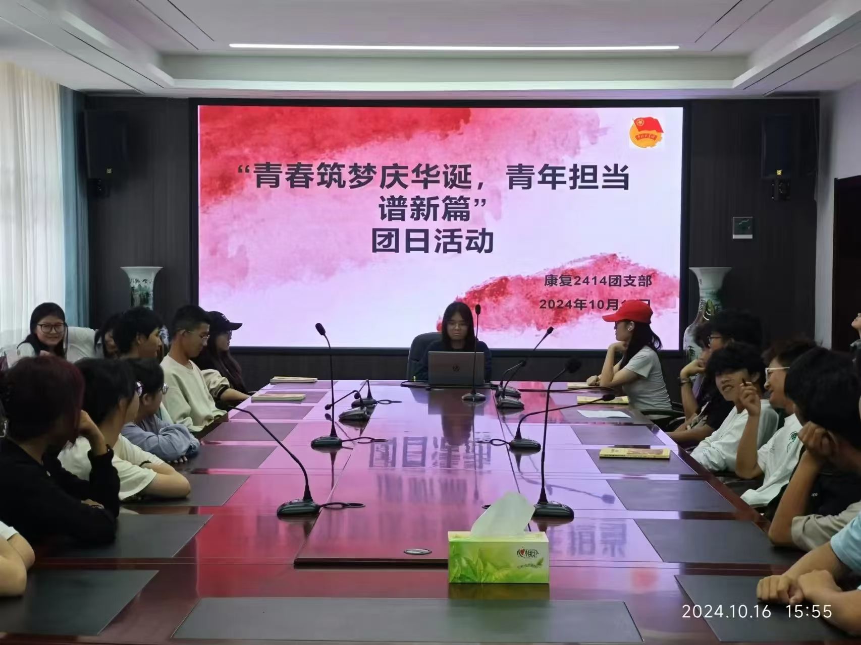 护理icc2401团支部、康复2414团支部团支书带领团员青年以小组合作探讨的形式开展了对于祖国美好未来的预测,以及在当今时代潮流中,祖国以坚定的姿态位于世界舞台前列所展现出强大的生命力和影响力。引导团员青年们树立“爱国奉献”、“勤奋进取”、“诚信友善”、“勇于担当”的正确价值观念,提高团员青年以坚定的信念和无畏的勇气担当重大责任的使命感和责任感。