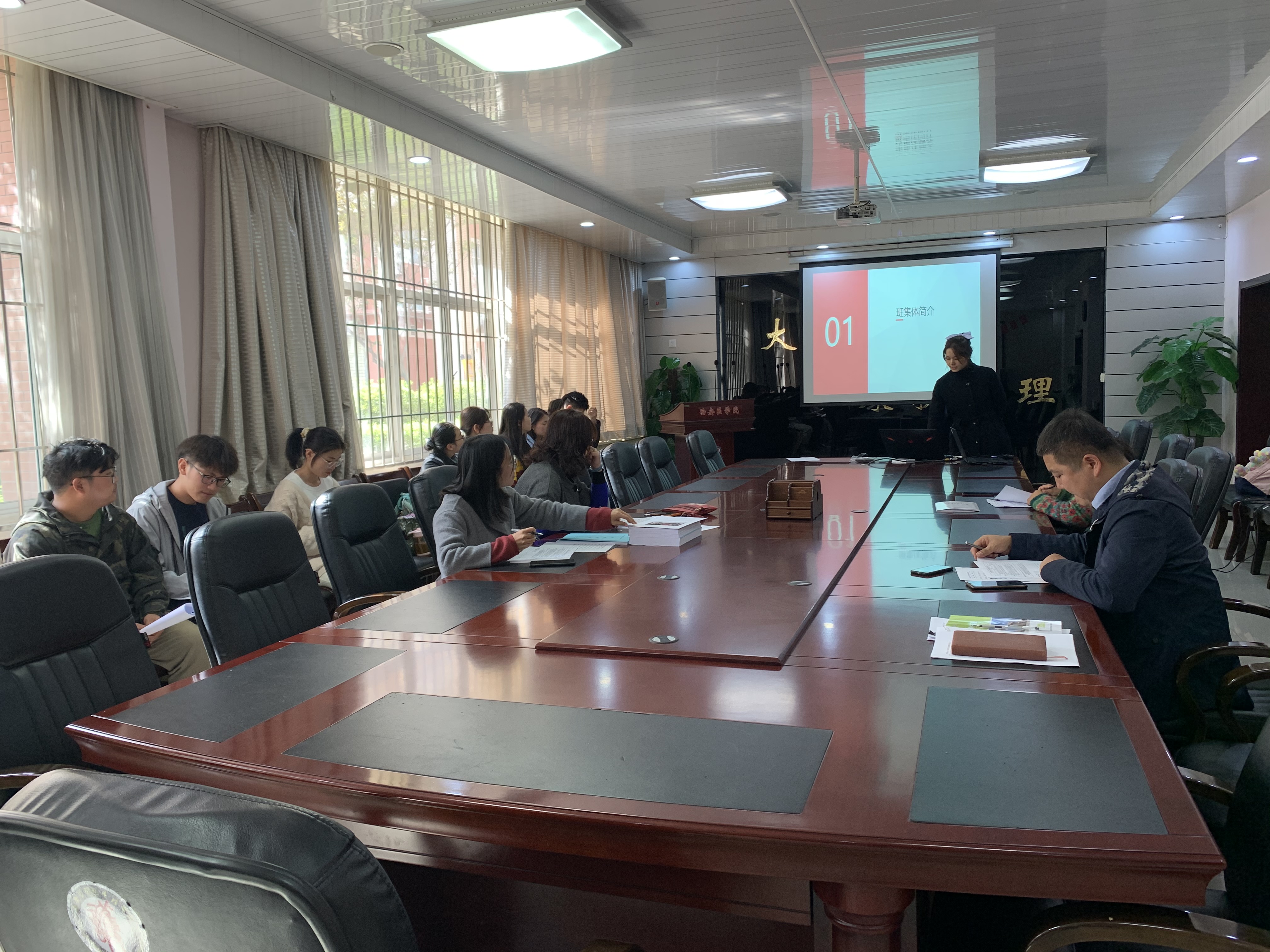 各班汇报人通过答辩的形式展示班级的班风班貌,各有千秋。分别从班级概况、班委工作情况、思想建设、班风建设、团日活动、社会实践、班级成绩与荣誉以及班级特色活动等方面展开。