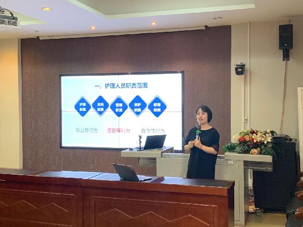 学院教学督导组秘书、外护教研室主任李贞副教授以“护理专业课堂教学经验分享”为题,从熟悉护理人员职责范围、掌握护理人员工作方法、坚持“以学生为中心”三个方面强调了护理思维在护理教学中的重要性。