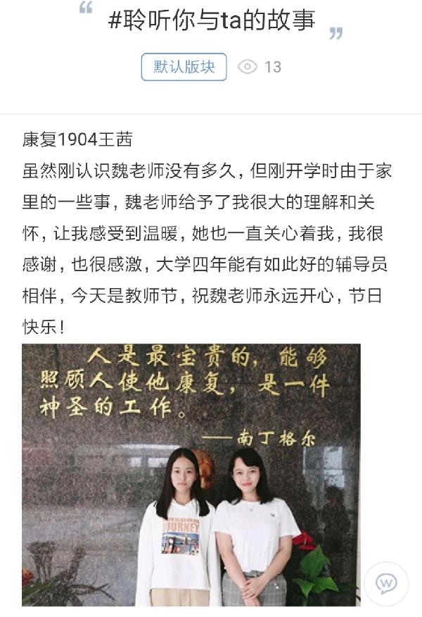 康复1904王茜与辅导员的故事