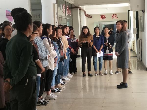 10月12日,护理学院召开了“5+1”S现场推进会暨观摩督导会。护理学院党总支书记景红军、副书记王毅、学生科负责人张红梅老师、2018级新生辅导员老师,以及各学生党支部委员、部分学生党员和积极分子们在五号学生公寓大厅讨论护理学院实行的“5+1”S宿舍管理计划。学院领导和老师们参观了九个样板间宿舍,并提出了当前宿舍还有待改善的一些问题,同时也对学生党支部、党员工作的开展以及各新生宿舍对于“5+1”S宿舍管理`计划执行的高度配合予以肯定。