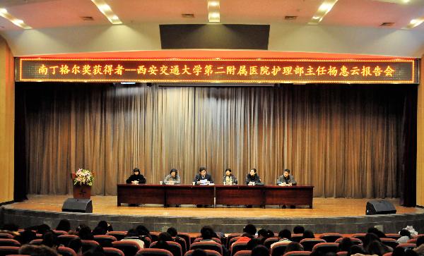 12月14日下午,护理学院邀请第46届国际南丁格尔奖章获得者——西安交通大学第二附属医院护理部主任杨惠云作了题为《弘扬南丁格尔精神,点亮患者康复之路》的报告。护理学院领导、全体教师及部分学生代表,共计400余人聆听了此次报告会。报告会由校纪委书记吴毅主持。