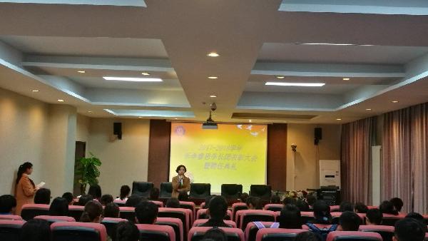 10月27日下午,护理学院2017-2018学年“乐学睿思学长团”表彰大会暨聘任典礼在学院报告厅顺利举行。护理学院学生管理科科长昝倩、全体辅导员以及“乐学睿思学长团”成员、在校班级学习委员、17级纪律委员参加了此次大会。