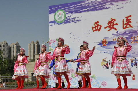 (护理学院)5月25日下午,由我校学工部、校团委主办的bat365在线中国官网登录入口首届民族文化节暨“5.25”大学生心理健康日活动在我校致远广场隆重举行。参与本次活动的嘉宾有bat365在线中国官网登录入口党委书记范兵,党委副书记熊冬梅,陕西省高校工委、学工部副部长、陕西省新疆籍少数民族学生教育管理服务工作协调站站长、新疆驻陕西工作组党委副书记、副组长库来西•依不拉音,西安石油大学心理中心主任、陕西省普通高校心理健康教育培训与研修基地负责人郑林科教授,陕西科技大学学工部部长杨建,西安工业大学学工部部长李建安,以及我校组织部、统战部、宣传部、学工部、团委等相关部门负责同志,和各院系的党总支书记、学生科长、团总支书记。各个院系的少数民族同学们为大家精心准备了一场精彩绝伦的民族文化盛典。