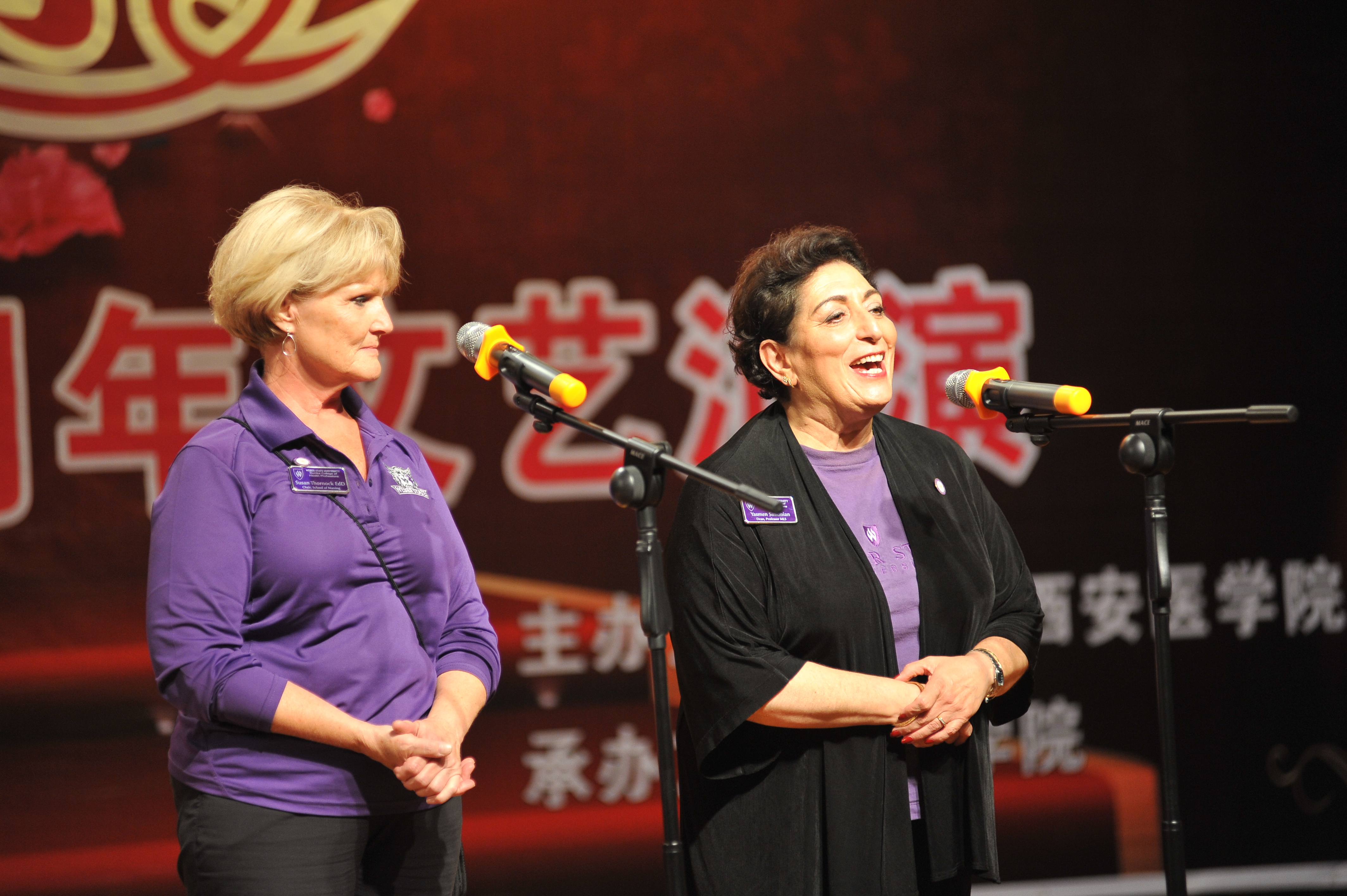 美国韦伯州立大学健康学院院长雅思明和护理系主任苏珊致词
