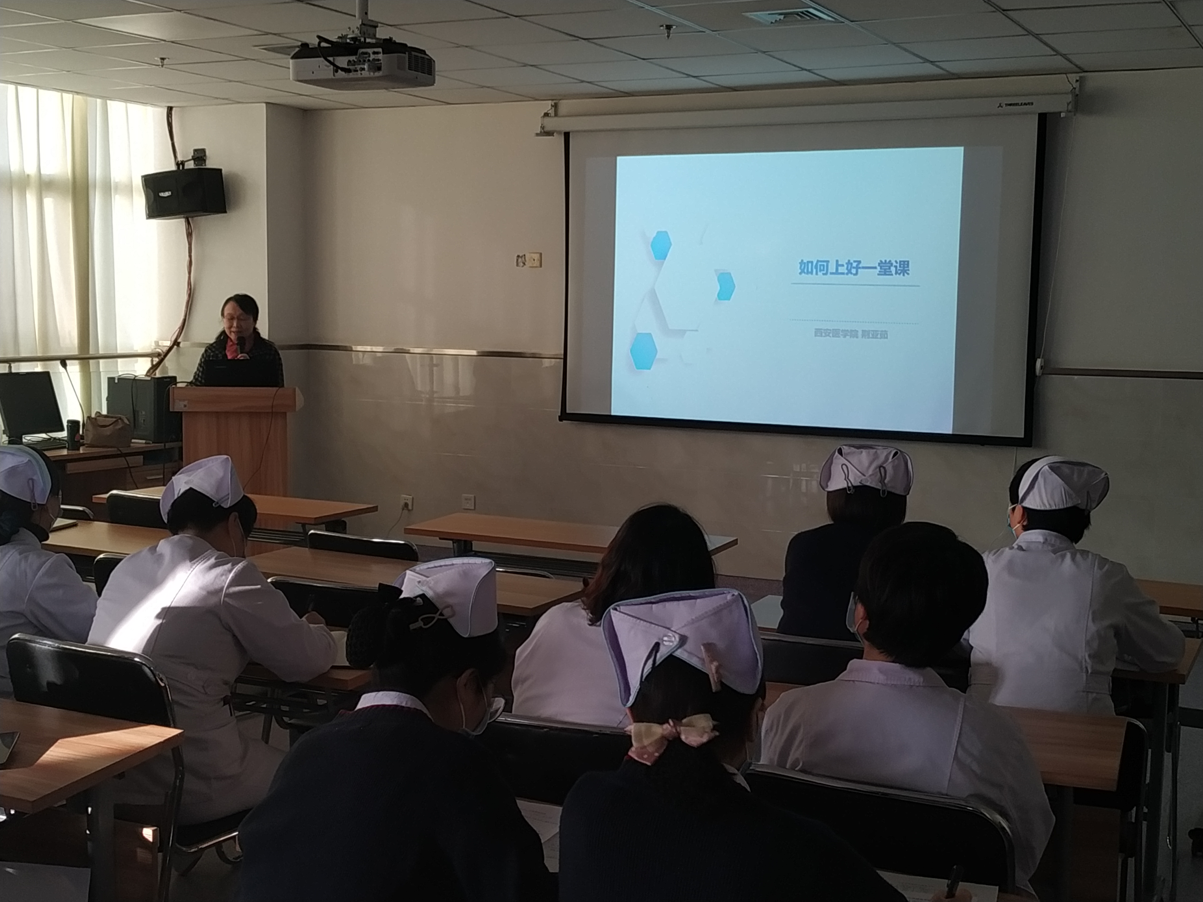 为了规范教学医院的课堂教学、提高教学质量,荆亚茹教授为医院任课教师作了“如何上好一堂课”的专题讲座。她从编写教案、制定内容、选择教法、了解学情等方面强调备课的重要性,结合自身多年教学的丰富经验认为:课堂教学要做到目标明确、重点突出;内容讲解准确无误,与临床实践相结合、与专业最新进展相结合;教学方法得当,师生互动融洽。荆亚茹教授的讲座受到医院教师的高度赞同,此次讲座使任课教师进一步熟悉教学流程,在今后的教学工作中做好备课、备学生,提高课堂教学质量。