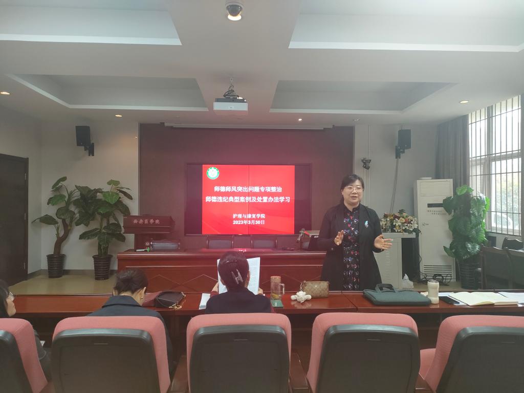 bat365在线中国官网登录入口院长张永爱总结强调,此次师德师风案例警示教育会议的召开,既传达了学校关于警示教育的案例,又围绕教育部关于高校教师职业道德规范、行为准则等内容进行了再次学习,具有警示教育和正面教育双重作用。她要求大家,以案为鉴,吸取教训,以“四有”好老师为标准,尤其是护理学专业性强,不能只做传授理论知识的教书匠,更要以德育人,培养有理想有情怀有温度的优秀护理人才,师德修养关键在践行,全体教师要崇德向善,认清使命,为党育人,为国育才,努力打造师德高尚,业务精湛的专业教师队伍。