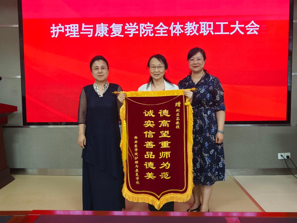 院长张永爱党总支书记刘庆向荆亚茹教授赠送锦旗