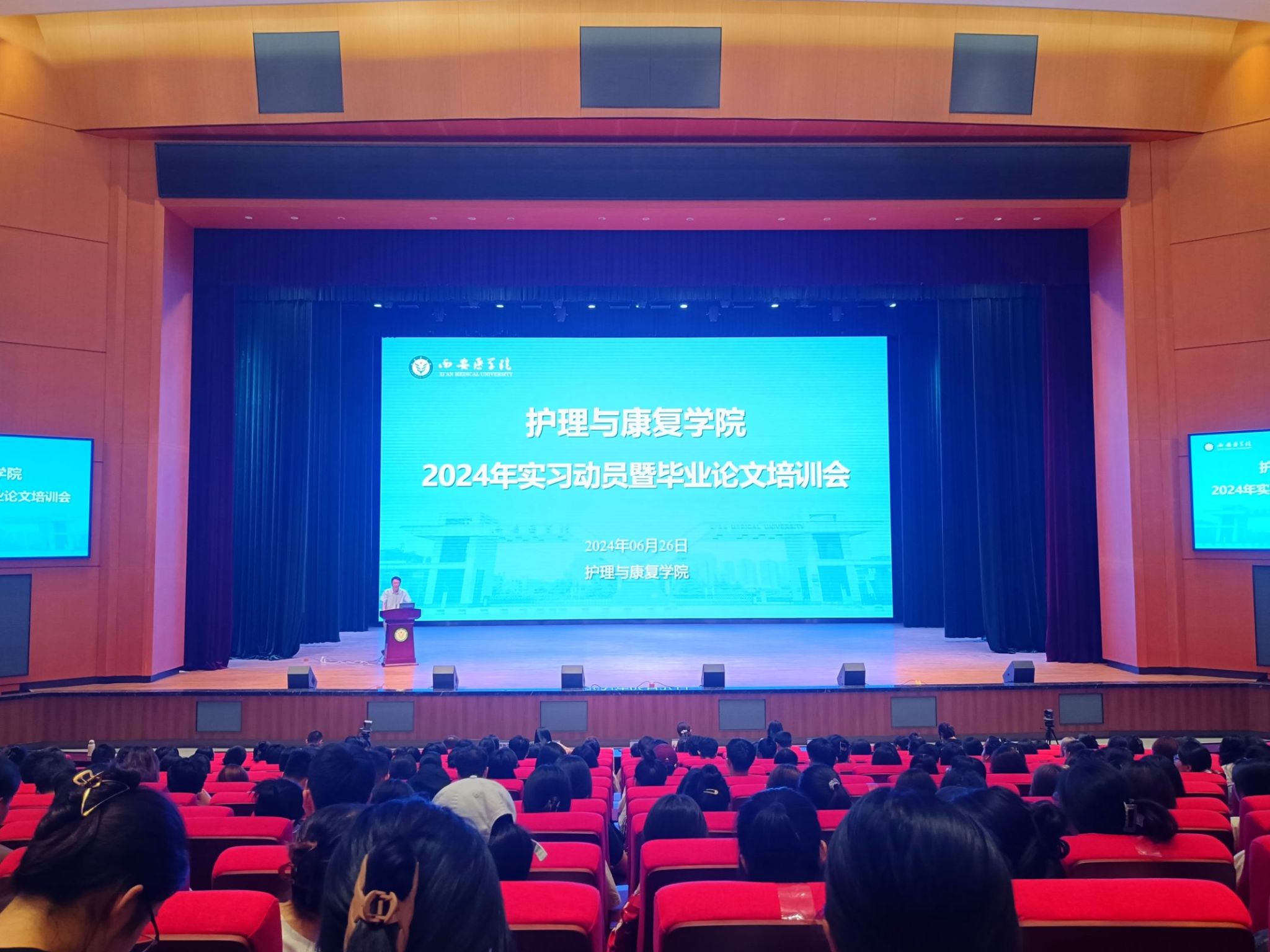 为顺利开展2021级毕业实习工作,确保毕业论文质量、加强实习教学管理,6月26日,bat365在线中国官网登录入口在体育馆博爱学术报告厅召开2021级实习动员暨毕业论文培训会。bat365在线中国官网登录入口党总支副书记张俊荔、副院长牛育鸿、教学管理科科长王丽娟、学生管理科科长张红梅、毕业班辅导员及2021级全体学生参加会议。会议由实习就业管理科科长焦艳会主持。