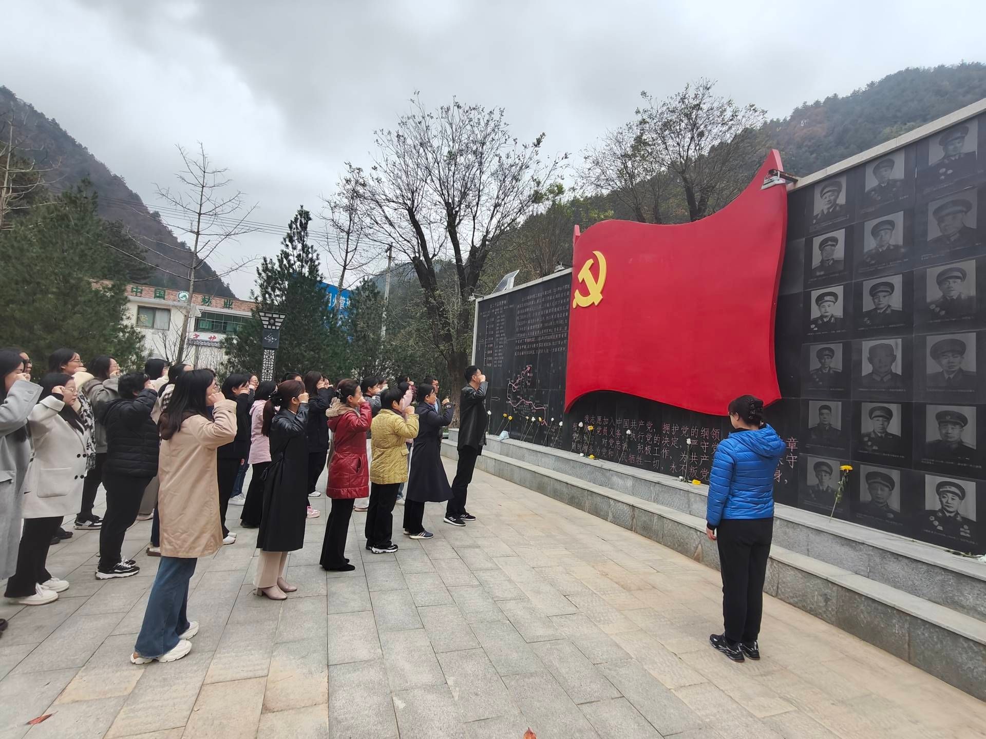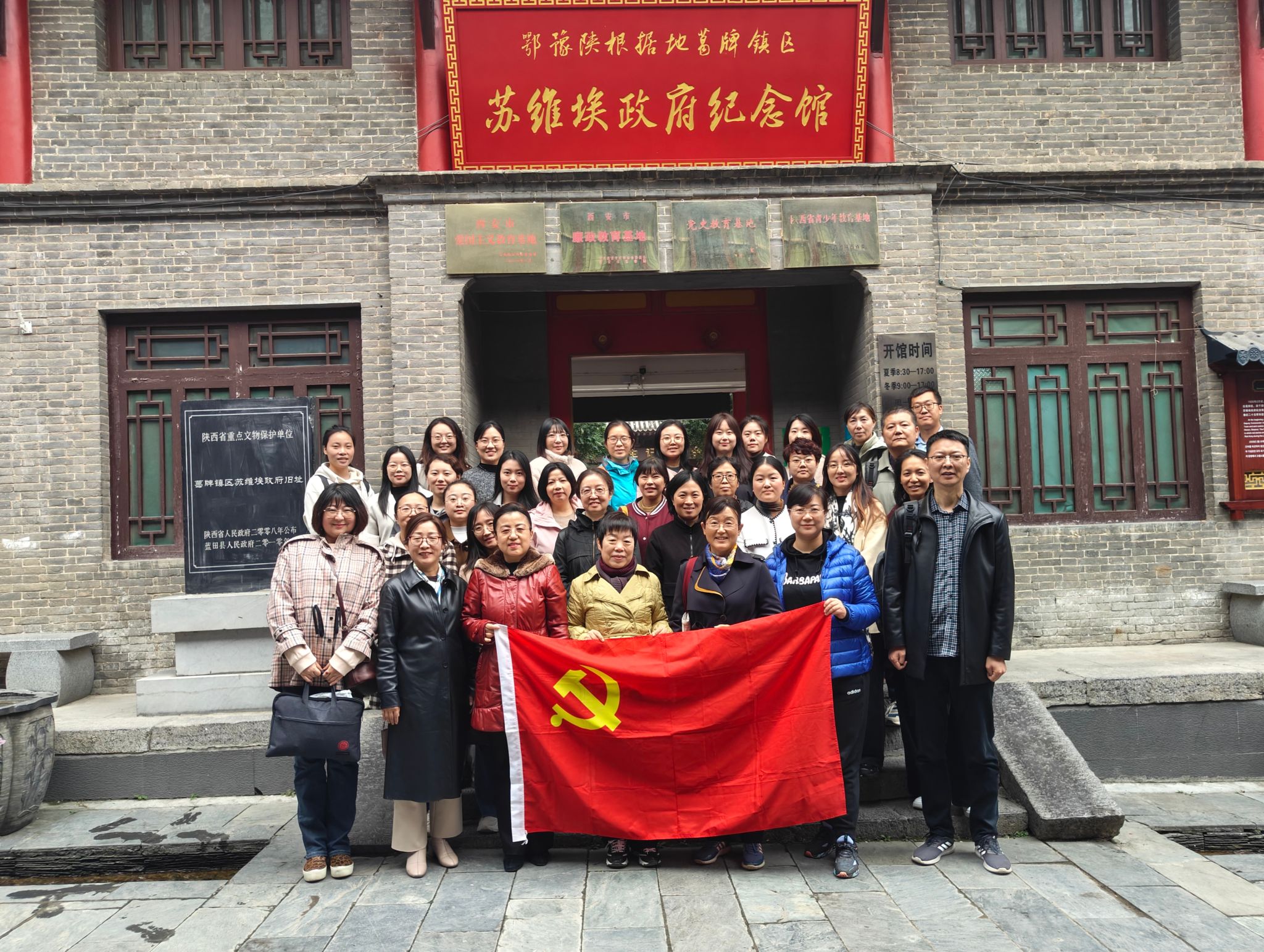 全体人员在鄂豫陕苏维埃政府葛牌纪念馆合影