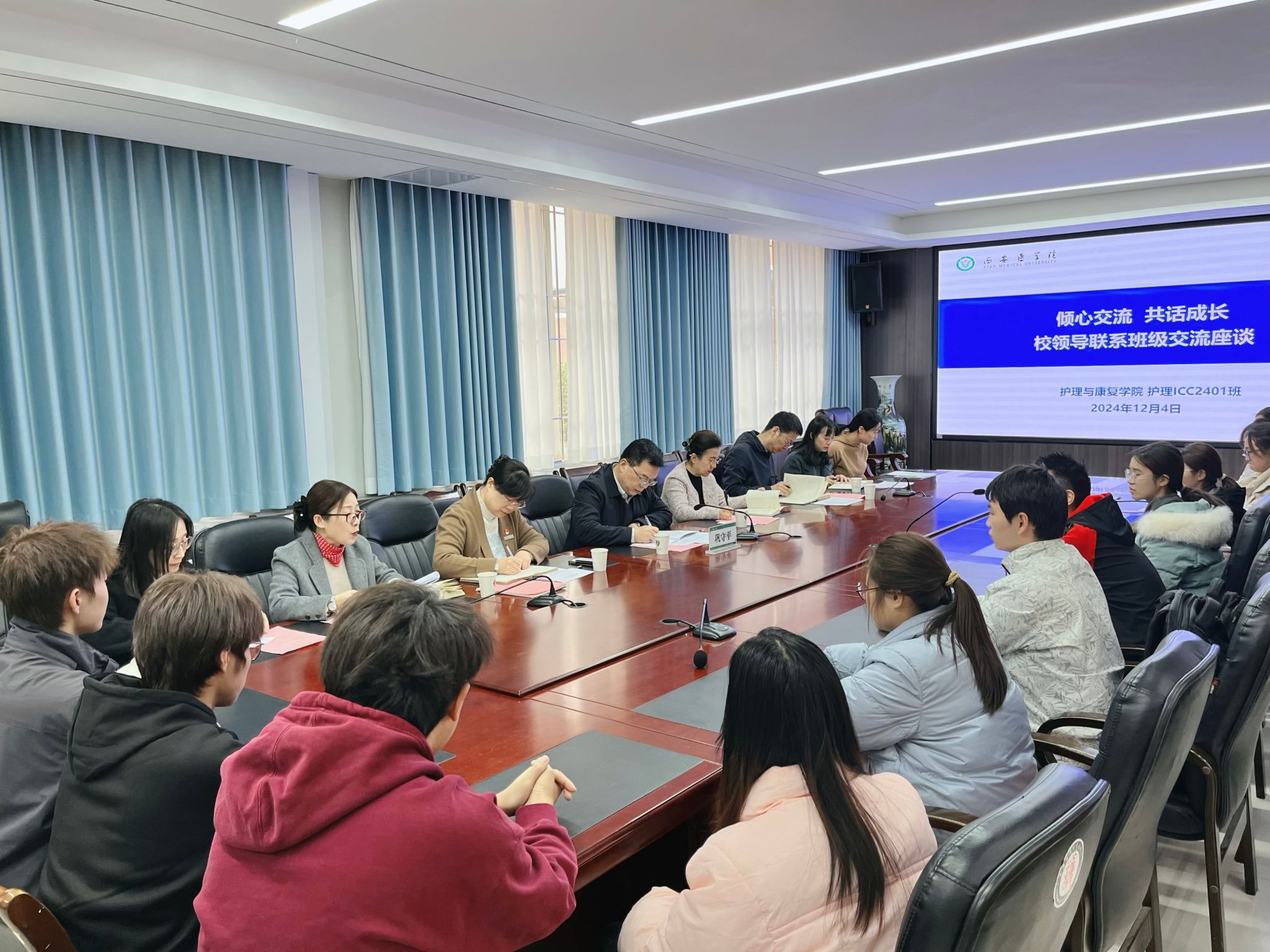 为贯彻落实全国、全省教育工作会议精神,进一步提升我校学生思想政治教育水平与管理服务质量,12月4日,校党委副书记、校长巩守平走进护理ICC2401班,近距离了解学生的学习与生活状况,悉心聆听学生心声与诉求,并与学生进行了亲切而深入的交流座谈。