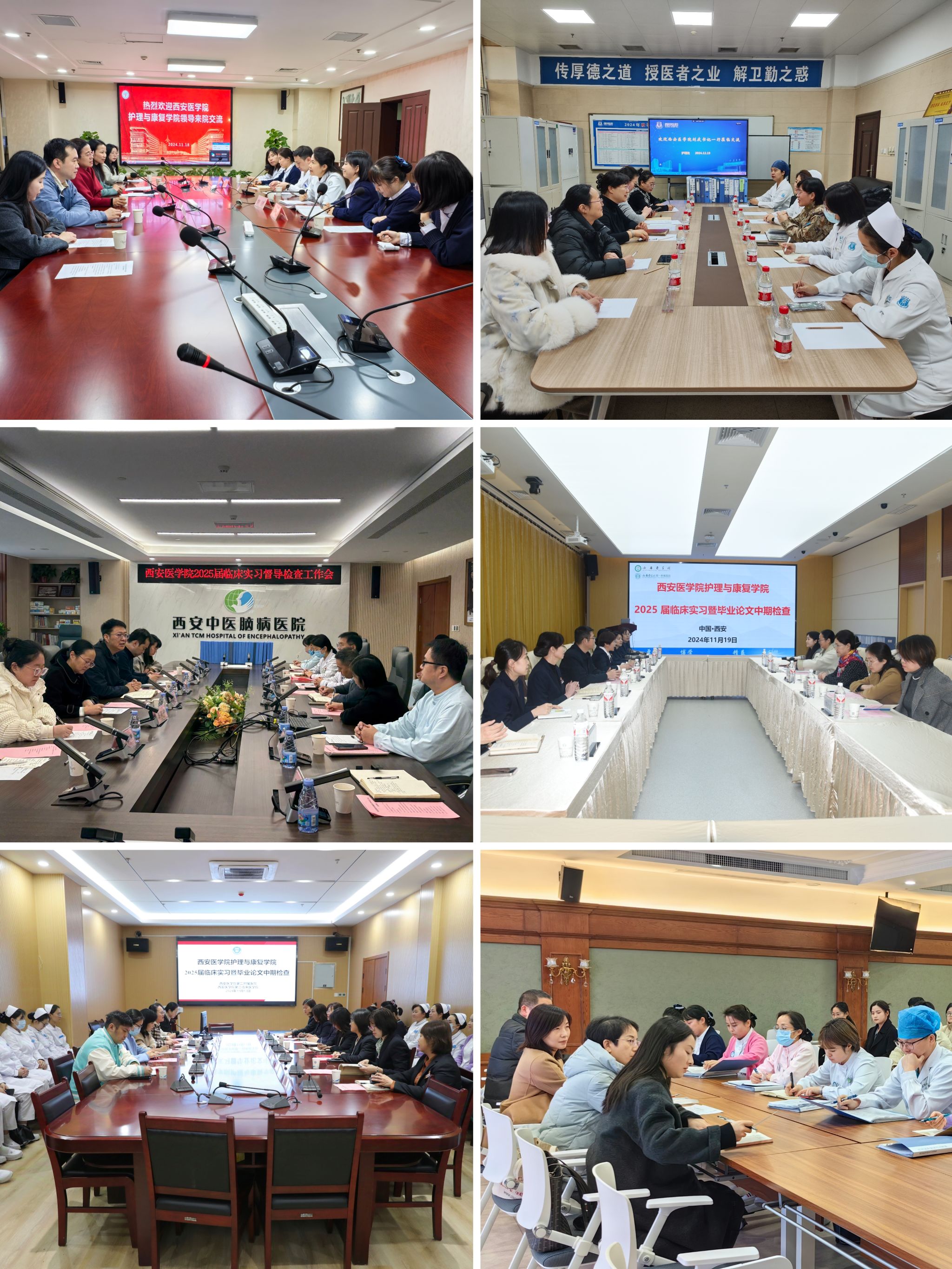 为进一步规范和加强临床实践教学管理,强化实践教学质量监控,促进医教协同育人,提升临床实践教学质量,bat365在线中国官网登录入口成立实习检查小组,由学院领导任工作组组长,学院教学督导、教学指导委员会委员、骨干教师、毕业班辅导员为主要成员,于10月30日至12月27日分别赴bat365在线中国官网登录入口第一附属医院、bat365在线中国官网登录入口第二附属医院、陕西省人民医院、西京医院、西安交通大学第一附属医院、西安市红会医院、陕西省康复医院、西安中医脑病医院等15家实习医院开展临床实习暨毕业论文中期检查工作。