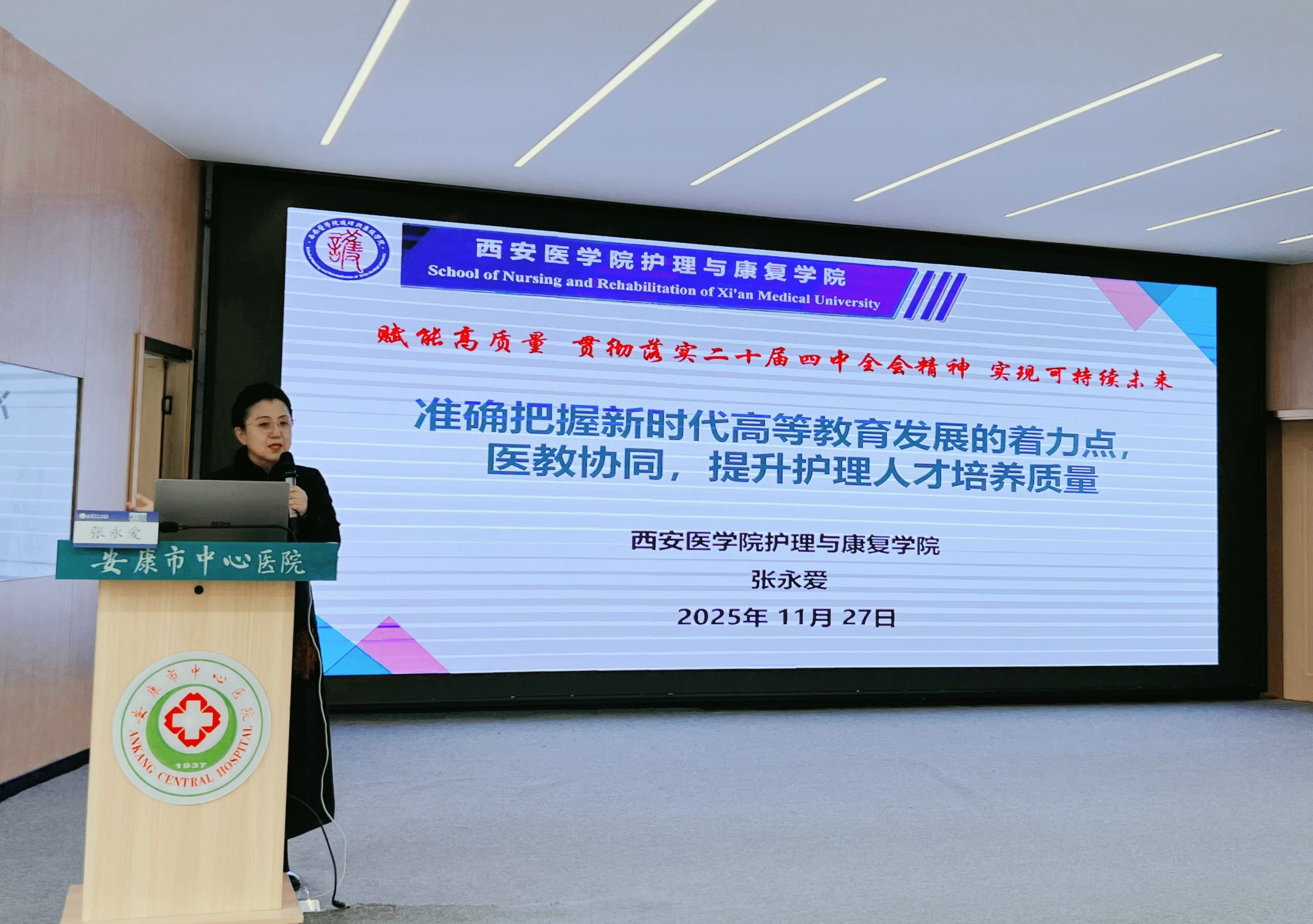 27日,张永爱一行受邀参加安康市护理学会神经脑病护理质量管理培训会。该培训会以“质量驱动 管理赋能 融合发展”为核心主题,为护理领域从业者搭建起经验交流与合作共赢的平台。会上,张永爱作为陕西省护理学会副理事长,首先发表会议致辞,随后以《准确把握新时代高等教育发展的着力点,医教协同,提升护理人才培养质量》为题开展授课,从高等教育发展趋势与医教协同实践路径出发,为提升应用型护理人才培养质量提供专业思路与方向。