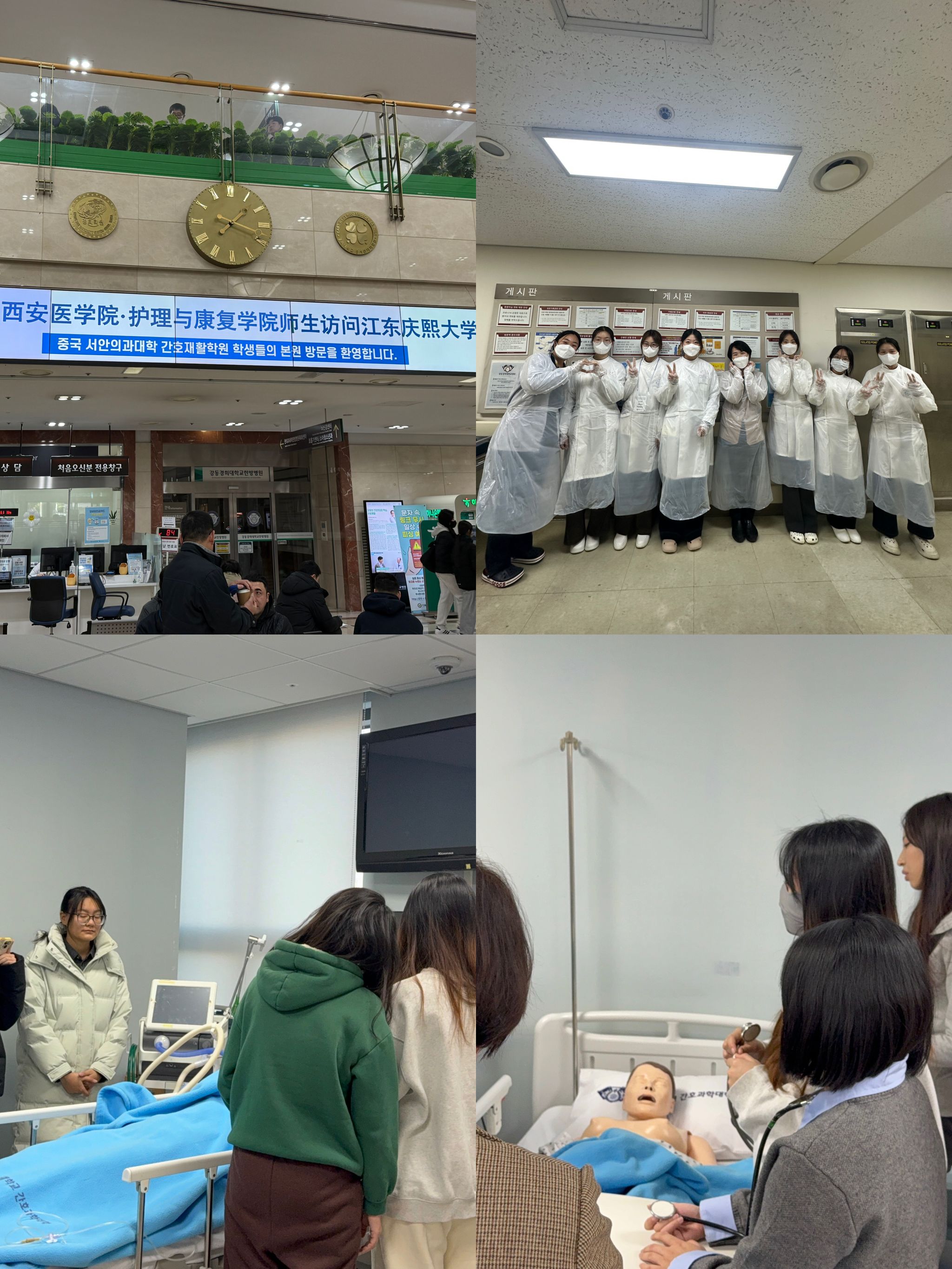 研学期间,研学团先后走进庆熙大学医疗院与江东庆熙大学医院,深入ICU、急诊科、中心控制室等核心科室开展临床见习。在见习过程中,师生们近距离接触国际高端医疗器械与前沿诊疗技术,系统了解韩国精细化医疗质控体系。同学们围绕患者管理、设备应用等专业问题积极提问,得到了医院专家的耐心解答与细致指导,对“以患者为中心”的护理服务理念形成了直观且深刻的认知。