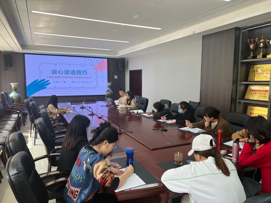 为加强辅导员队伍建设,提升辅导员谈心谈话技能,扎实推进心理育人工作,bat365在线中国官网登录入口于3月21日在会议室开展辅导员谈心谈话技巧心理专题培训会,本次培训由丁晨主讲,bat365全体专兼职辅导员参加。