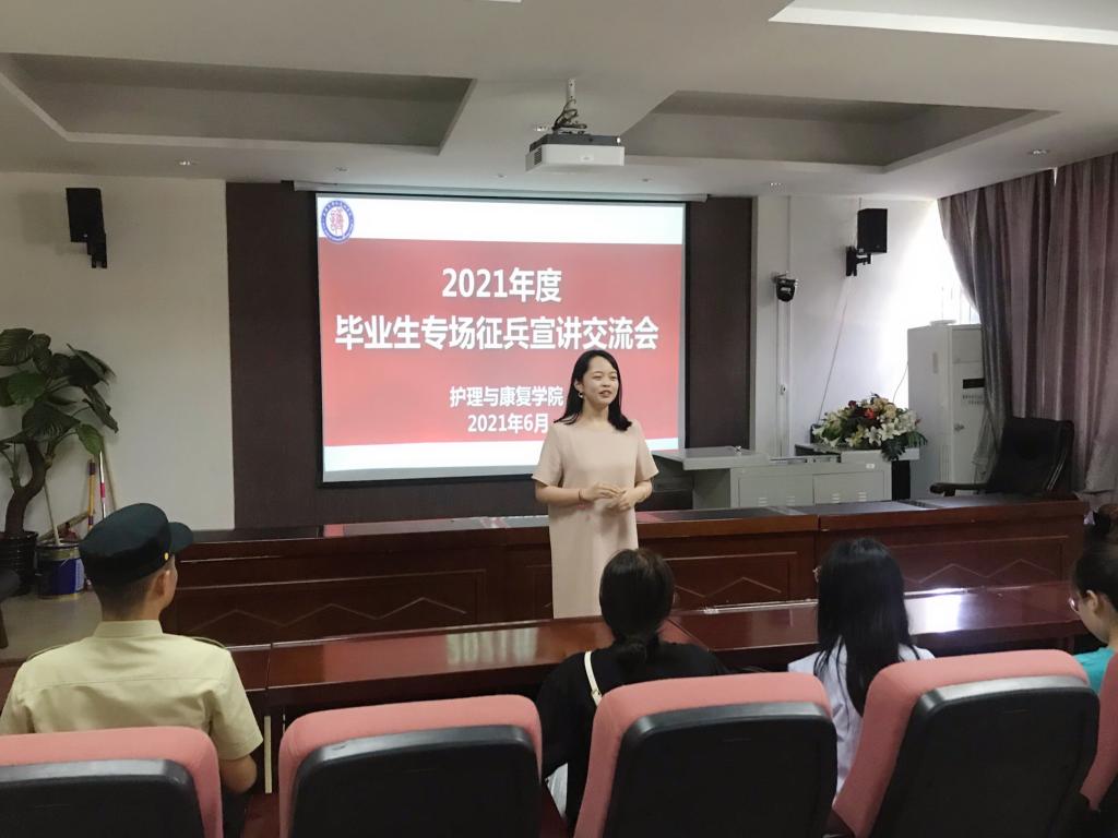 为进一步激发2021届毕业生参军报国热情,精准做好有应征入伍意向毕业生的服务工作,bat365在线中国官网登录入口于2021年6月7日中午,在学院报告厅2021届毕业生征兵宣讲交流会。bat365在线中国官网登录入口征兵工作负责老师魏咪、优秀退伍大学生代表李妍、阴耀荣及部分毕业生参加了本次会议。