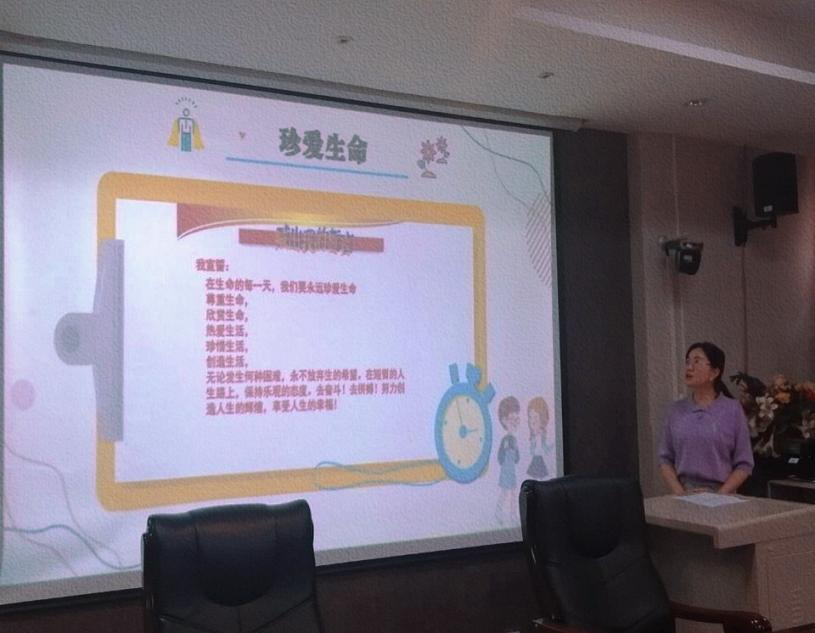 活动伊始,王老师通过一个案例视频引入活动的主题生命教育,接着通过最近两年发生在校园里的真实案例,阐述了当代大学生面临的心理压力和放弃生命的现实状况。然后从生命的涵义及特征、大学生自杀的影响因素、心理危机的识别与应对及勇面挫折、珍爱生命四个方面开展本次的心理健康教育活动。