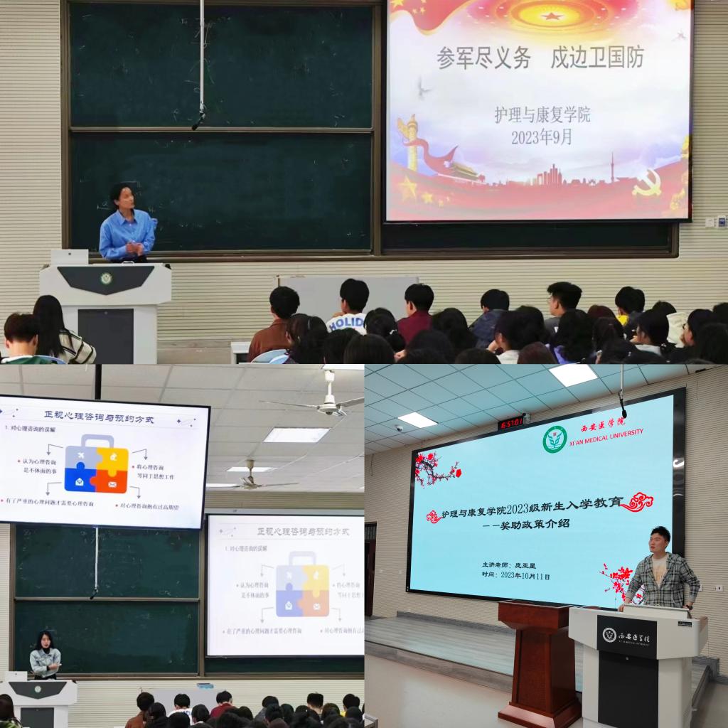 丁晨老师介绍了大学生心理健康教育工作的主要内容,并说明了学校心理咨询的预约方式,动员同学们积极参加学校和学院的各类心理健康教育相关活动;随后,庞亚星老师为同学们详细讲解了国家和学校各类奖助政策,希望同学们认真学习专业知识,积极参加文体活动,做到全面发展;董维娜老师介绍了征兵的基本条件、政治要求和福利政策,号召同学们积极参军入伍,培养新生树立参军光荣的意识及爱国主义精神。作为学生第一党支部书记,董老师还从“入党动机、入党的基本条件、入党流程、如何积极向党组织靠拢”等方面向同学们讲授了入党相关知识,倡导全体新同学积极向党组织靠拢。