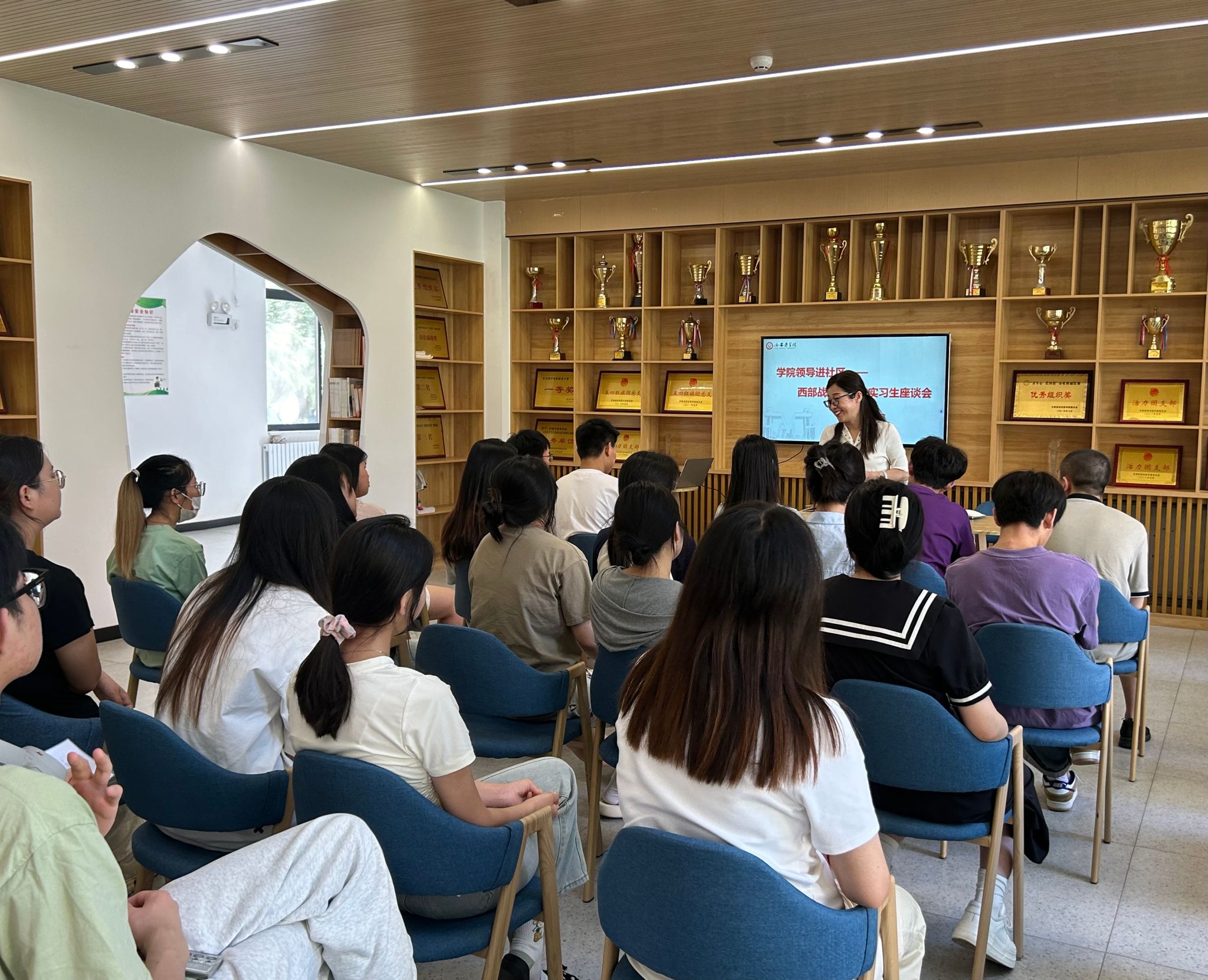 为更好地推进毕业实习工作,提高实习实践育人质量,6月5日下午,bat365在线中国官网登录入口在“一站式”学生社区5号公寓分站组织“导师有约”工作坊活动之“学院领导”进社区——西部战区总医院实习生座谈会。bat365在线中国官网登录入口党总支副书记张俊荔,实习就业管理科科长焦艳会、西部战区总医院实习生参会,会议由焦艳会主持。