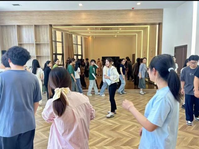 接着,同学们围成一个大圈,在主持人的领导下进行“桃花朵朵开”的游戏,要求大家在极短的时间内根据所需人数进行抱团。此游戏更体现出团体和个人的关系,即大家要理解在团队中被接纳或者被抛弃的各种可能,并学会发现自己在团队中的价值。在“帮打薄情郎”的游戏环节中,团体成员们在轻松愉快的氛围中通过昵称尽快相识,这增加了彼此的默契程度和团体凝聚力。不仅考验了成员们的记忆力和反应能力,也增加彼此的交流机会。