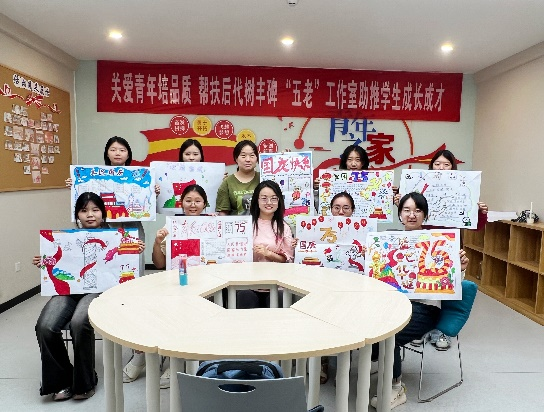 10月3日,刘思瑞老师组织在校积极分子,在党团活动室开展“盛世中华 喜迎国庆”主题党日活动。活动中安排了“红色旋律猜猜猜”与“你来比划我来猜”两个小游戏并通过“绘画接力”的形式,共同表达了对祖国的深情祝福。