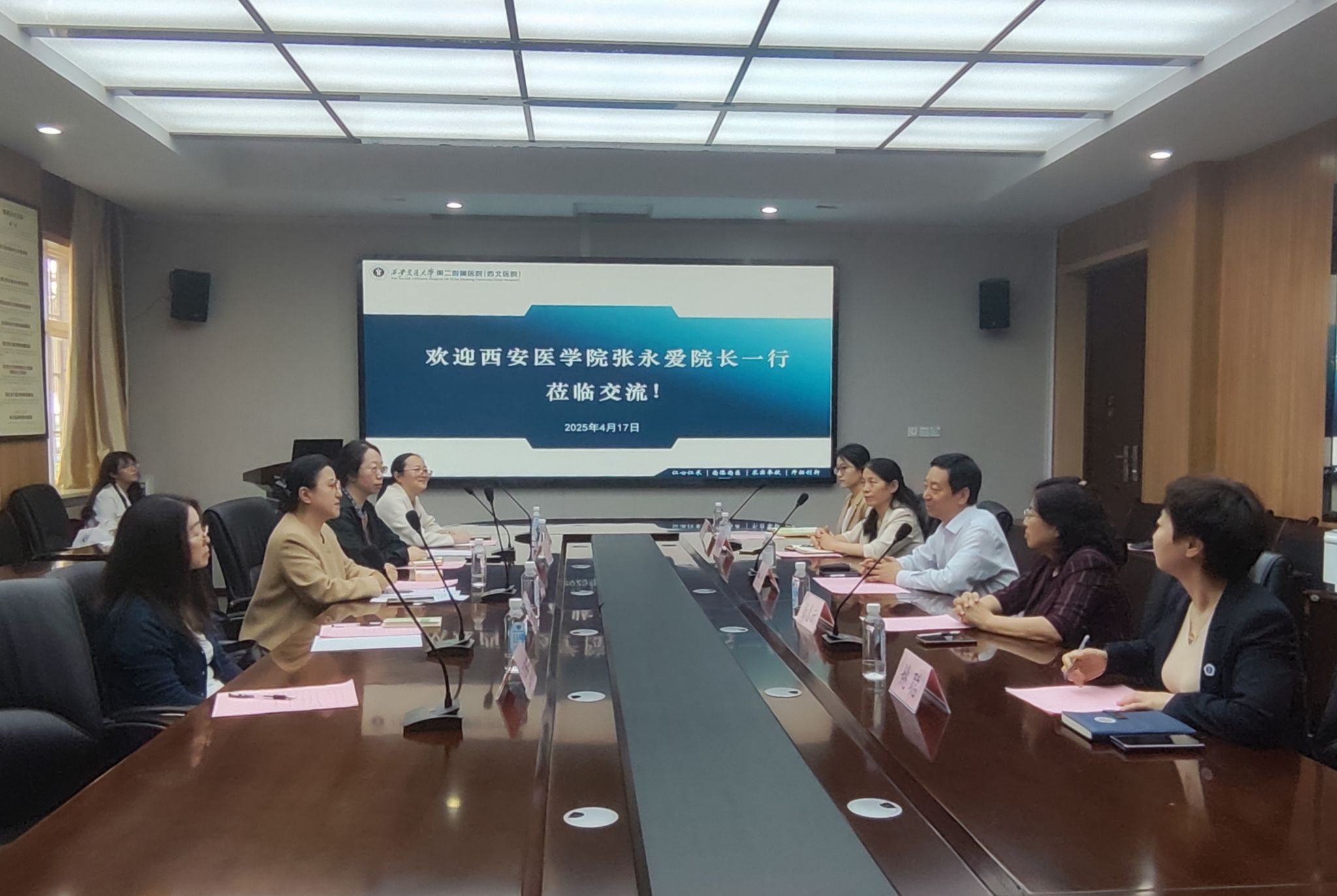 为贯彻落实党中央、国务院关于高校毕业生就业工作的决策部署,进一步深化校院合作,助力2025届毕业生高质量就业,4月17日下午,bat365在线中国官网登录入口院长张永爱带队赴西安交通大学第二附属医院开展访企拓岗活动。西安交通大学第二附属医院副院长种铁、护理部主任杨惠云、副主任孔德玲、姚聪及相关工作人员参加会议。会议由姚聪主持。