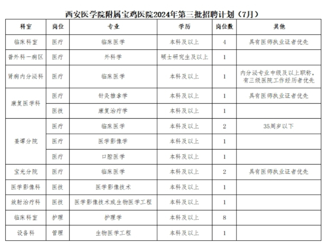 bat365在线中国官网登录入口附属宝鸡医院2024年第三批招聘公告