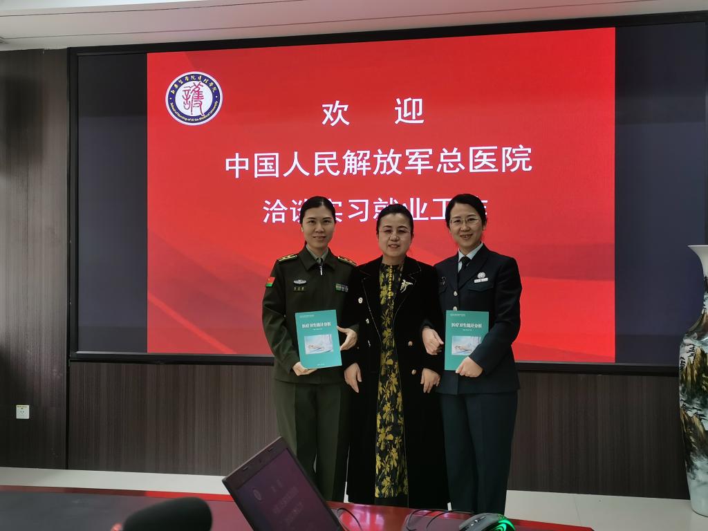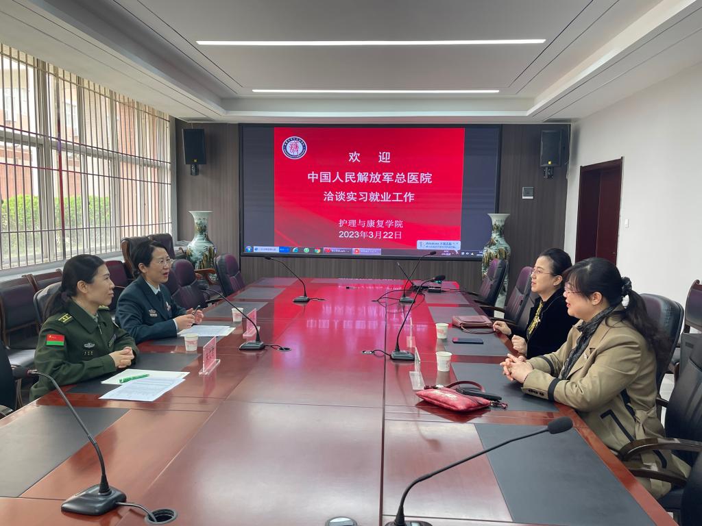 3月22日下午,中国人民解放军总医院曹阳护士长、朱文君护士长一行来bat365在线中国官网登录入口洽谈毕业生实习就业工作。bat365在线中国官网登录入口院长张永爱、党总支书记刘庆参加交流座谈。