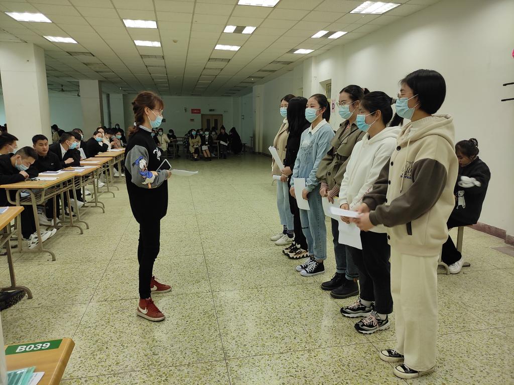 按照防疫防控要求,招聘会实行分时段、间隔性入场,现场设置单个出入口,求职学生须出示个人健康码、测量体温,测量正常方可入场。招聘开始,刘部长就医院的院内文化建设、科室设置、薪资待遇及前景发展给同学们做了详细的介绍;接着播放咸阳市中心医院宣传片和2020年辉煌成就时刻纪录片,让同学们进一步了解和认识咸阳市中心医院;随后学生每班一组进行现场面试,历经七个小时顺利完成。