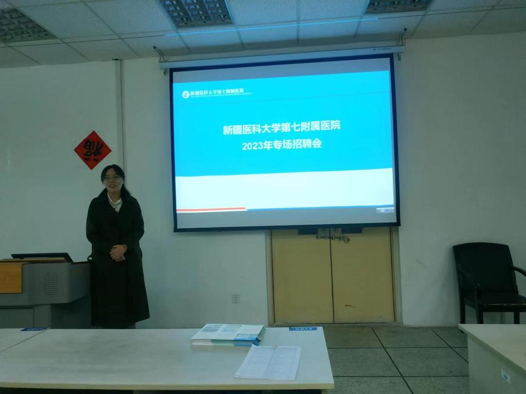 3月27日下午,bat365在线中国官网登录入口在含光校区图书馆二楼多媒体教室举办校园招聘宣讲会,邀请新疆医科大学第七附属医院来校宣讲招聘,bat365在线中国官网登录入口党总支副书记王毅、就业专干袁青及学院部分2023届毕业生参加。