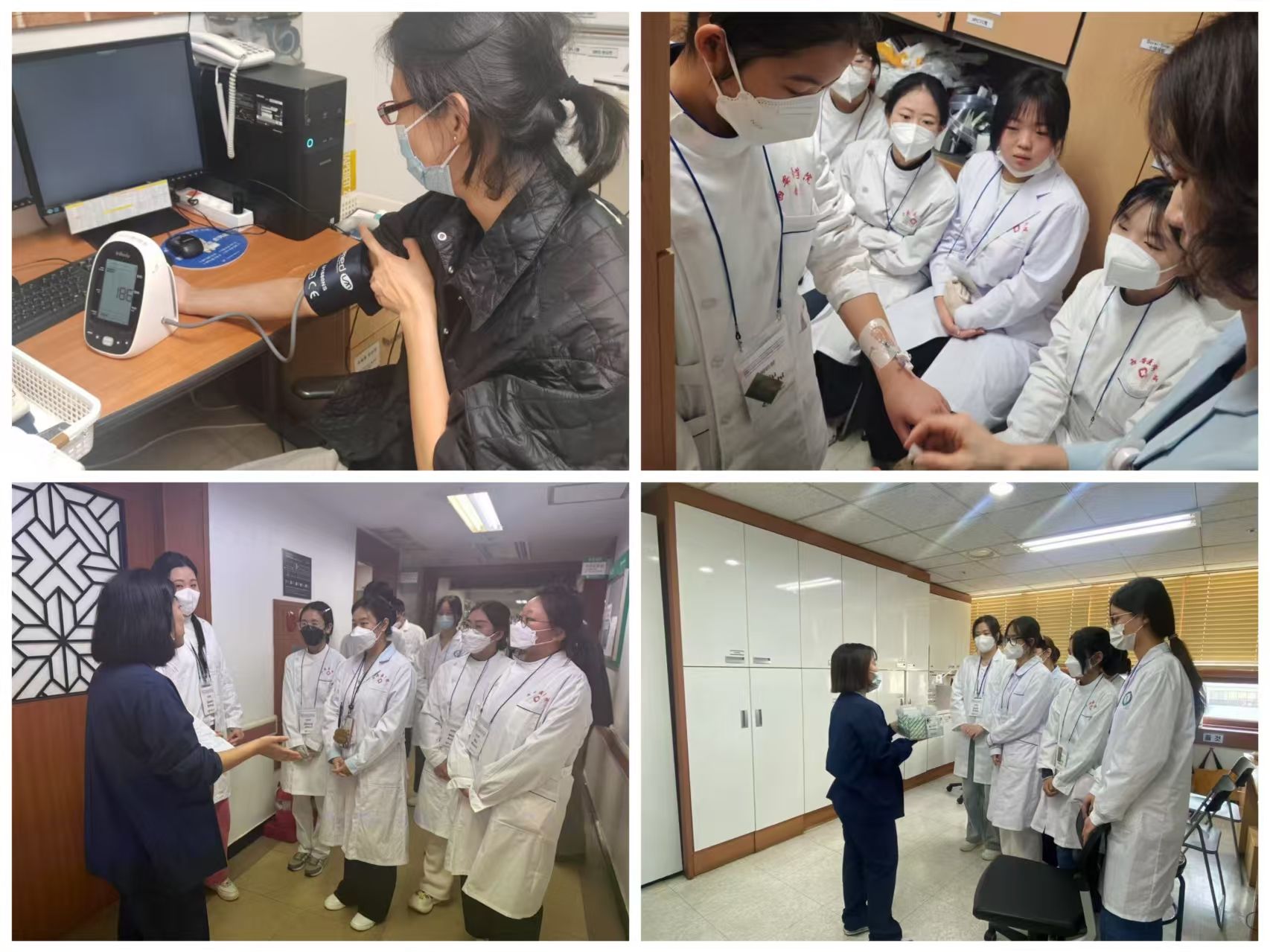 本次中韩护理本科研学交流学习包括理论与实践两部分。理论学习阶段,庆熙大学护理科学学院的教授为学生们带来精彩授课,聚焦主要的现代护理理论,巧妙融合护理理论知识与科学研究方法,启发学生探索护理领域课题,助力开启相关研究之路。在实践学习环节也是收获颇丰,学生们参观了模拟实验中心,并参与成人心肺护理、儿童用药护理的实际模拟实验,熟悉关键护理实操流程。在庆熙医疗院学生们跟随临床护士老师见习,实地观摩韩国医疗机构运作模式,详细了解体验科室各类设备仪器及多项护理技术。与此同时,学生们还与韩方师生积极互动,围绕护理专业当下热点问题展开深入研讨交流,拓宽了专业视野。