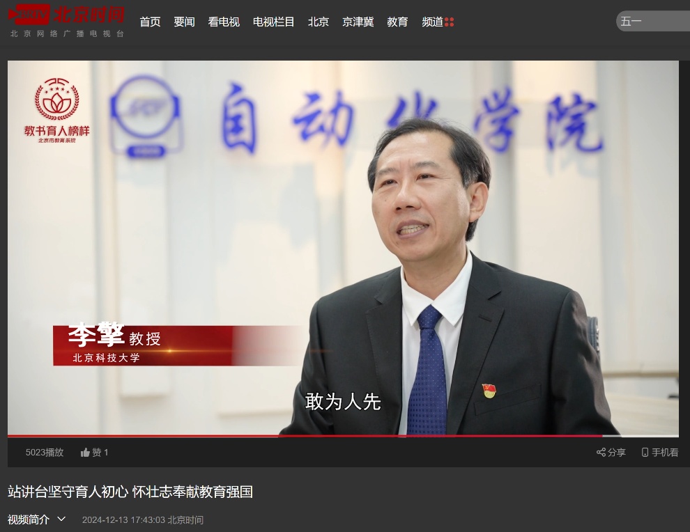 [8] BRTV报道北京市教育系统“教书育人榜样”买球体育官方网站李擎教授事迹
