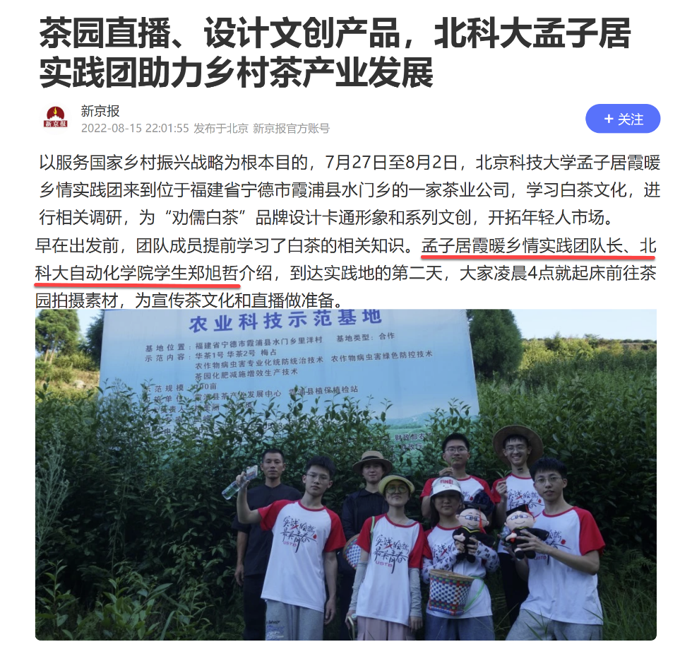 新京报对买球体育官方网站社会实践助力乡村振兴事迹进行报道