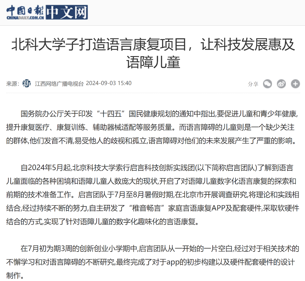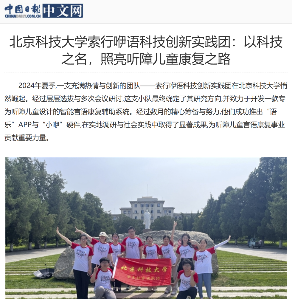 [4] 中国日报对买球体育官方网站“索行启言”实践团助力语障儿童康复训练事迹进行报道