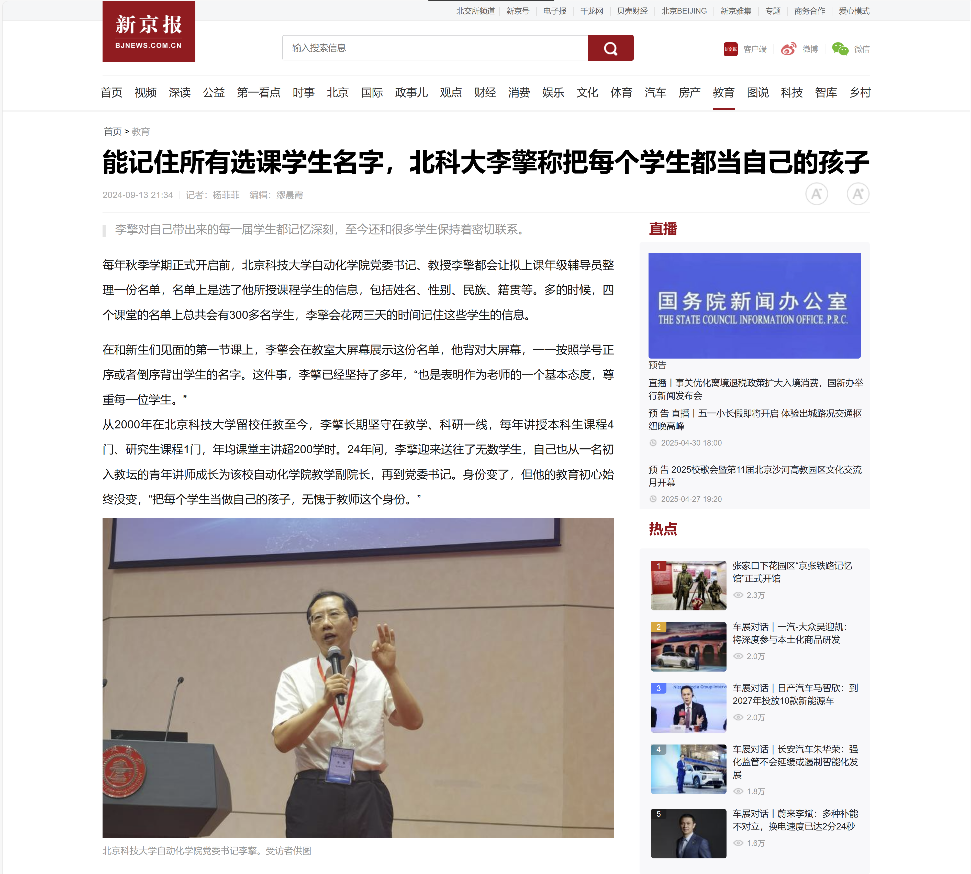 新京报报道买球体育官方网站李擎教授“爱生如子”事迹