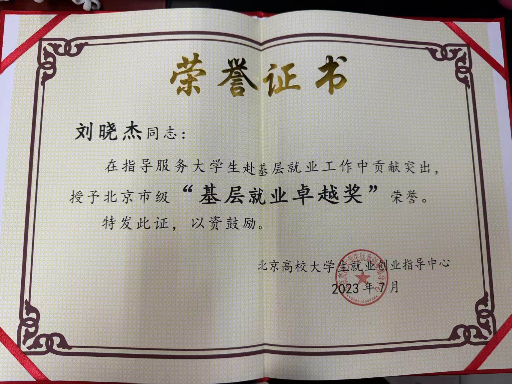 [30] 【基层就业卓越奖】2023年7月,刘晓杰获北京市级“基层就业卓越奖”